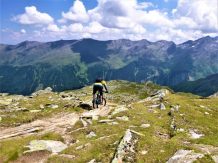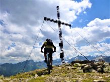 Wer eine technisch fordernde Trail-Abfahrt mit alpinem Charakter sucht, wird auf dieser Tour vom Kreuz bis nach Praxmar voll auf seine Kosten kommen. Auf insgesamt 14,5 Kilometern erwarten dich ausgesetzte Passagen, grobsteiniger Untergrund und ein Höhenunterschied von 1300 Metern – davon rund 700 Höhenmeter als Tragestrecke. Dieser Trail ist nichts für schwache Nerven, aber genau das Richtige für erfahrene Biker*innen, die Herausforderungen lieben.