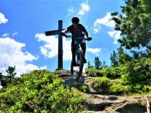 Abfahrt vom Kreuz im Schwierigkeitsgrad S2/G1 mit mehreren schwierigen S3/G2 Stellen und einer S5/G3 Stufenpassage hinunter zum Höhenweg. Von dort weiter über den sehr flowigen 22-Trail im Schwierigkeitsgrad S2 auf festem Untergrund mit einigen Spitzkehren und kleineren Wurzelstufen hinunter nach Hausstatt.