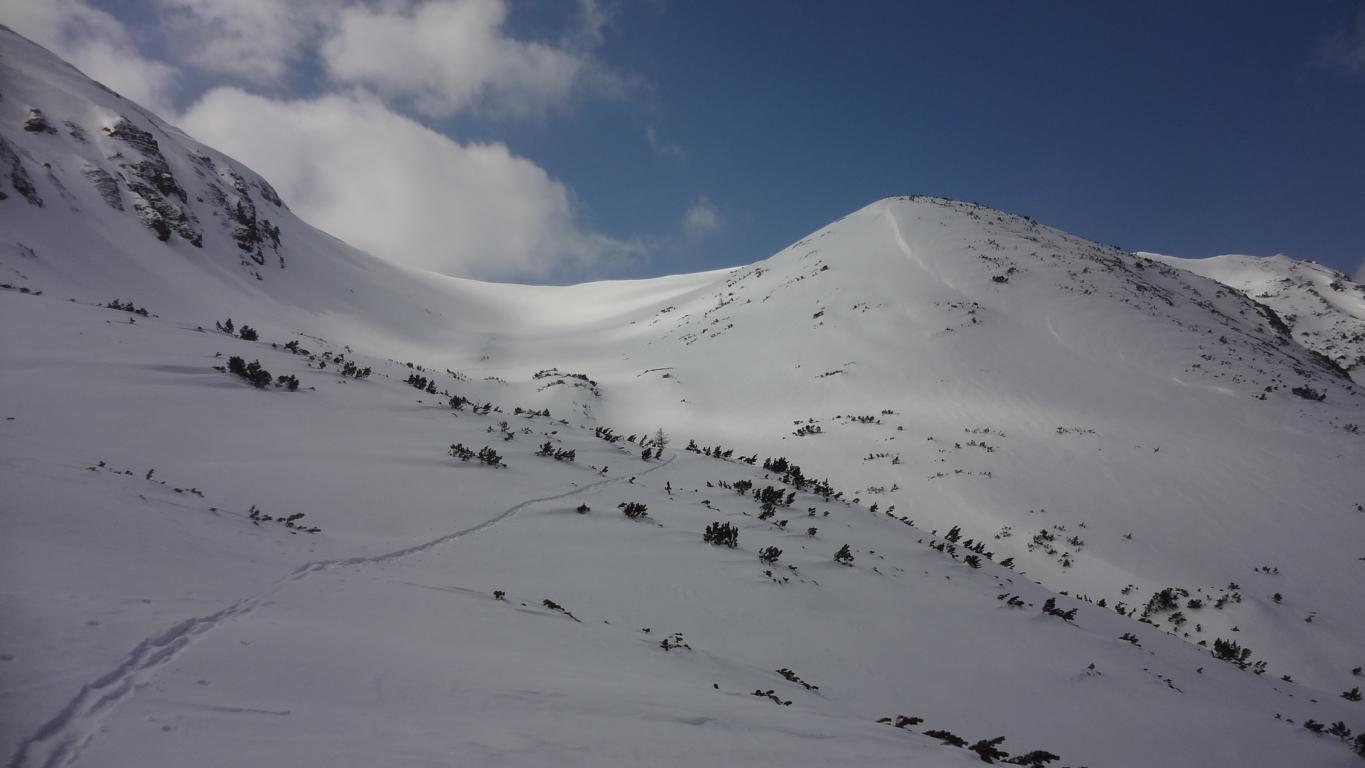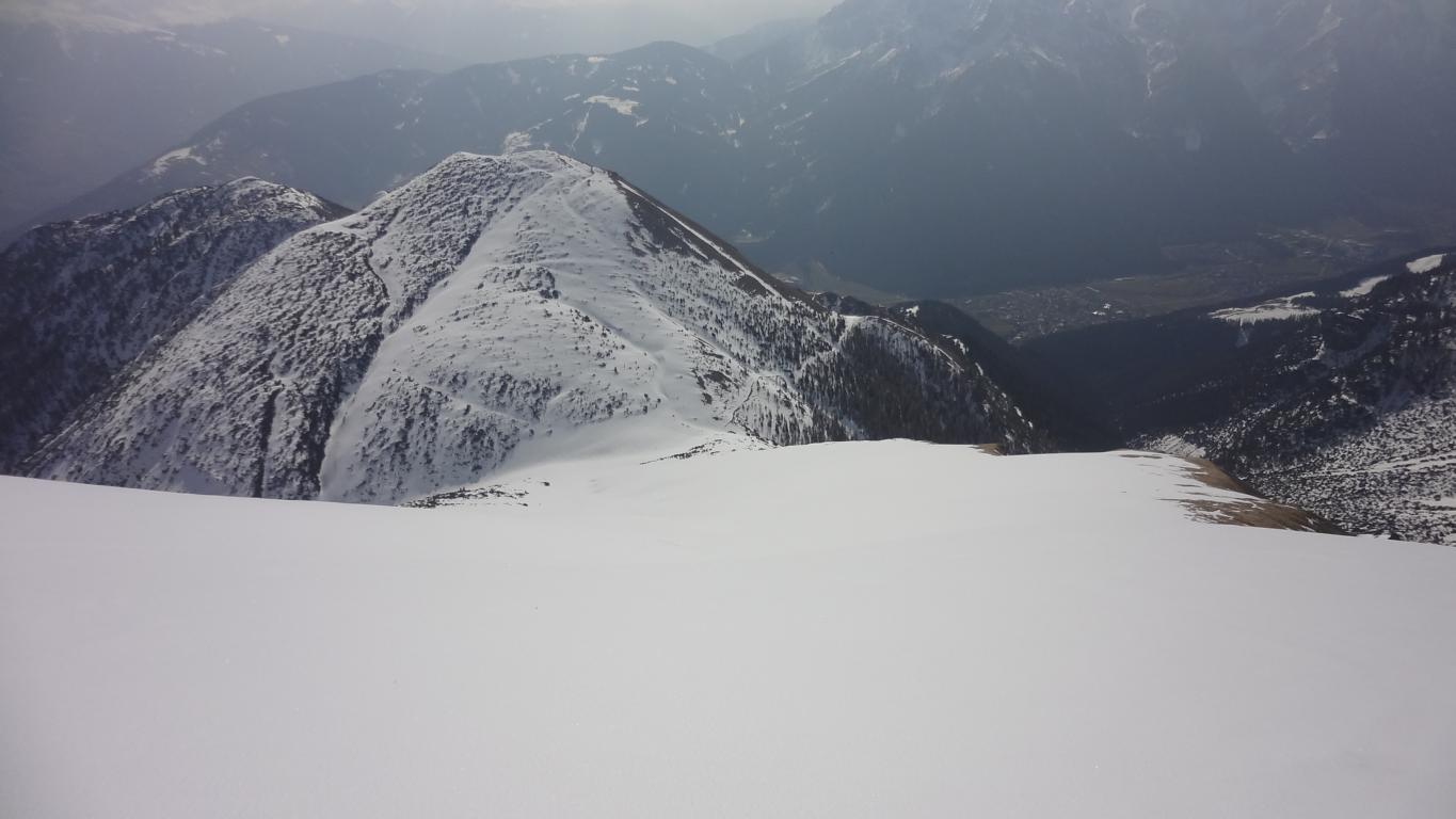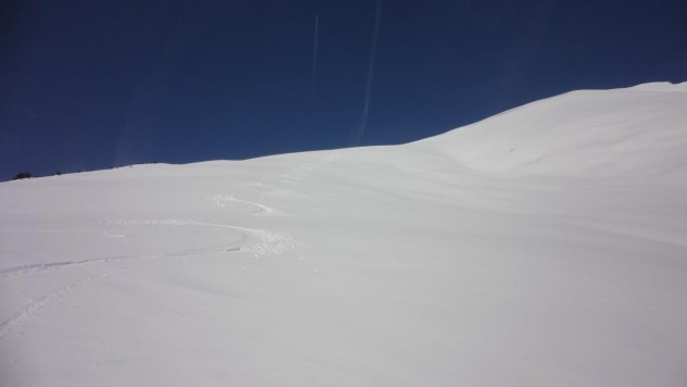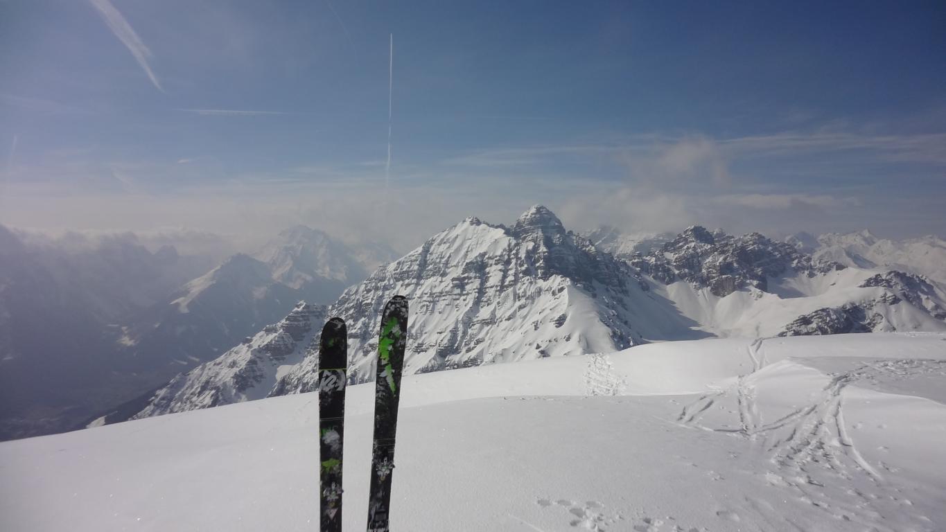 Abfahrt als erster über das Leintuch bei Traum Bedingungen. Dann rüber zum Hals und rauf auf die Schneiderspitze und von dort hinunter ins Lizumer Kar.