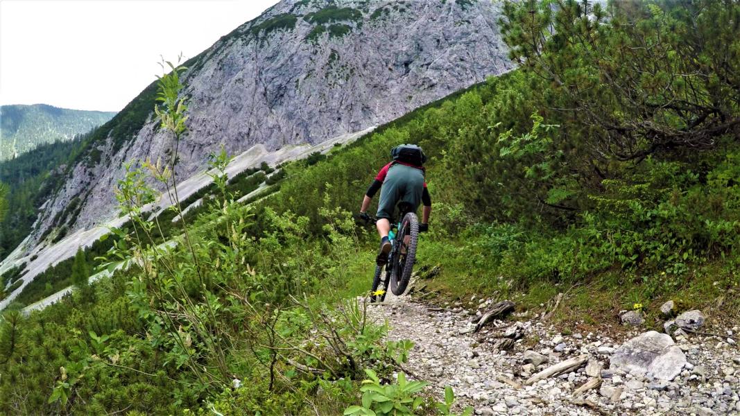 Der Trail führt, Einstieg ca. 150 Hm über den Sperrenhaus, auf grobsteinigen und sehr verblockten Untergrund im Schwierigkeitsgrad S3/G2 mit ein paar S4/G2 Stellen hinunter zum Stausee. Von dort bei den Plenderleseen vorbei und weiter über den Traumtrail hinunter zum Hirschebensee. Der Schwierigkeitsgrad des Trails liegt bei S2/G1 mit ein paar S2+ Stellen. Weiter auf flowigen S1-Trail hinunter ins Kühtai.