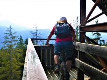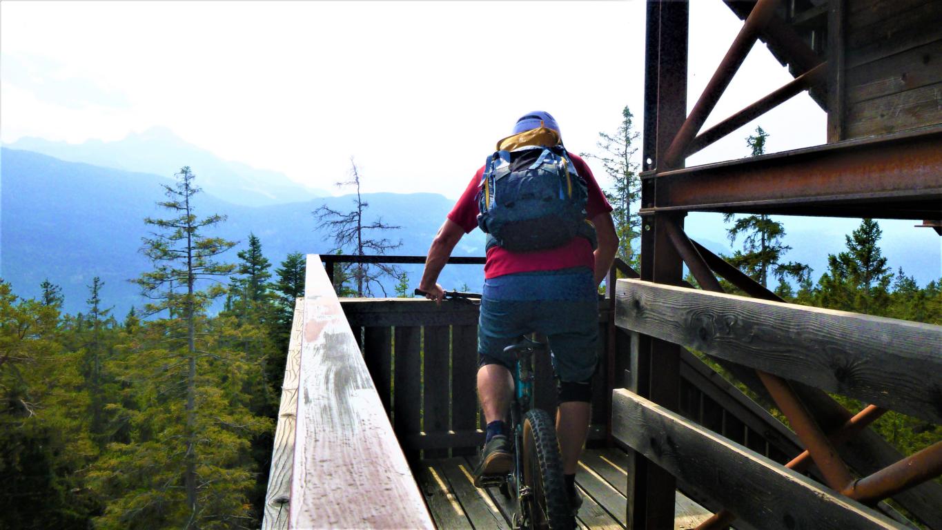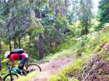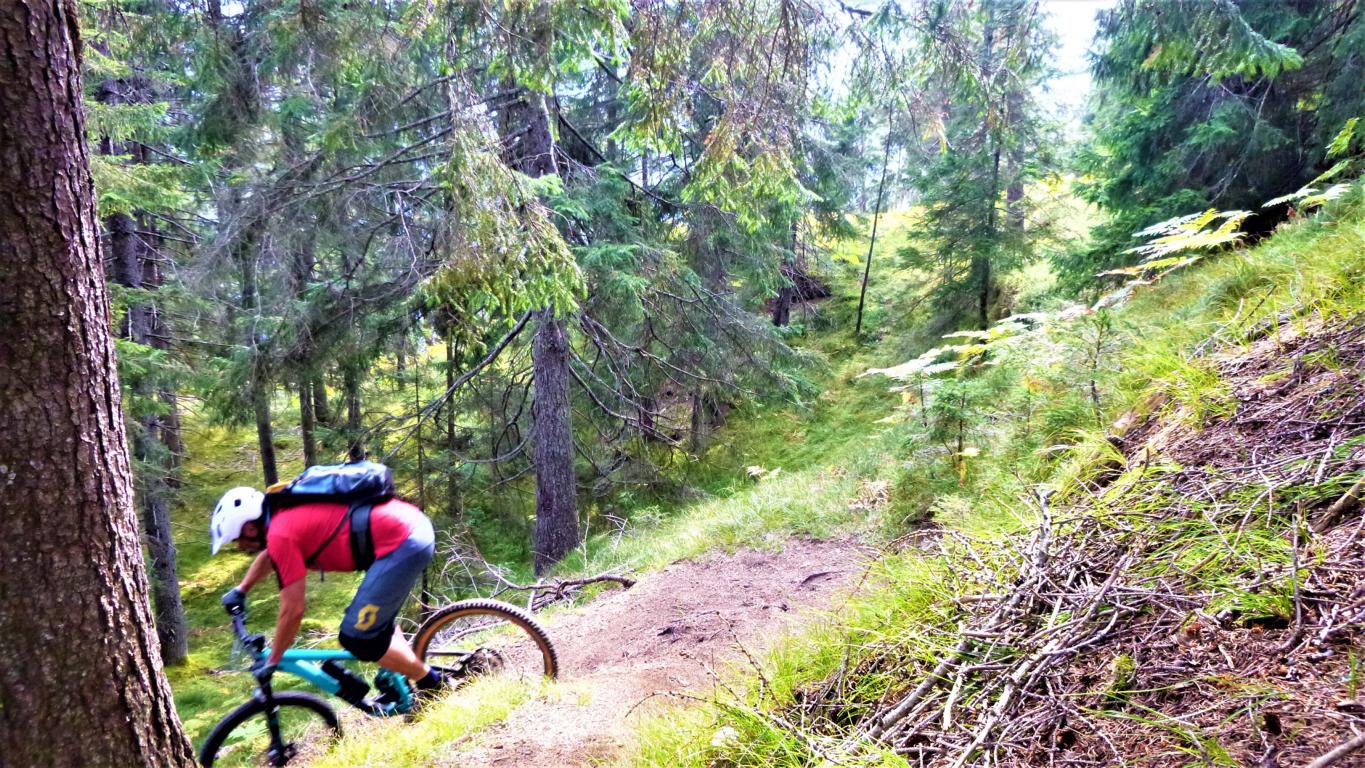 Die Abfahrt von der Plattform über die Holztreppen liegt im Schwierigkeitsgrad S3/G2, der Einstieg ist mit S4/G4 zu bewerten. Der 5er-Trail führt durchgehend auf festem, wurzeligen Waldboden, anfangs sehr flach im Schwierigkeitsgrad S1/G1 dann steiler und ausgesetzt im Schwierigkeitsgrad S2/G3 mit mehreren S3/G2 Spitzkehren bis knapp nach der “Schönen Aussicht” hinunter zur Forststraße. Eine einzige steile Stelle mit höheren Stufen, im Absturzgelände, weist den Schwierigkeitsgrad S3/G4 auf.
