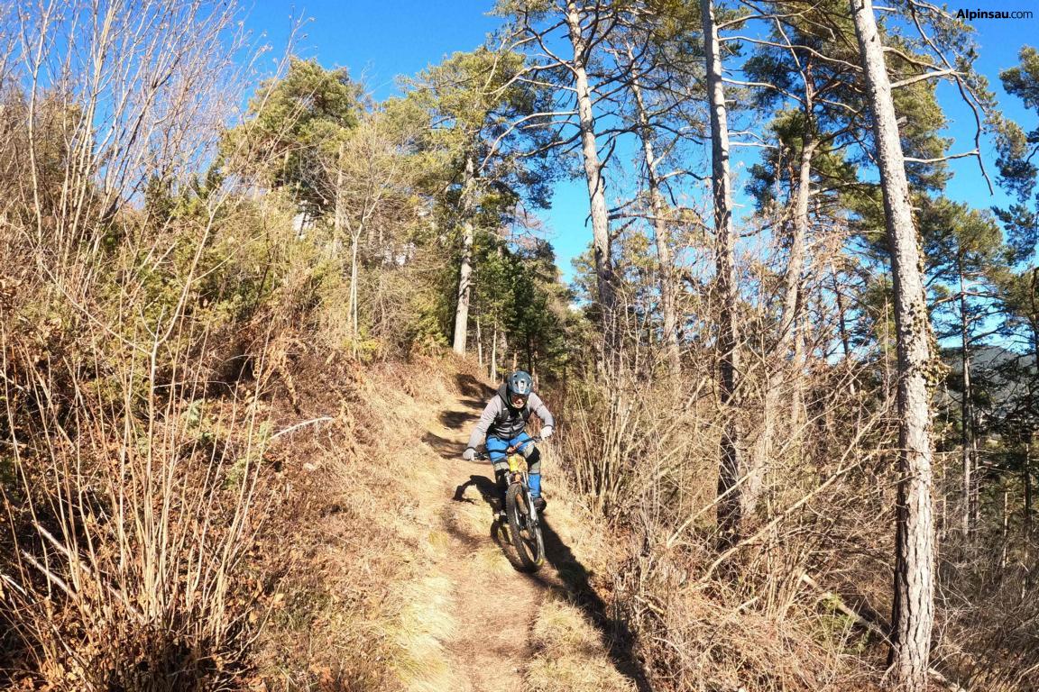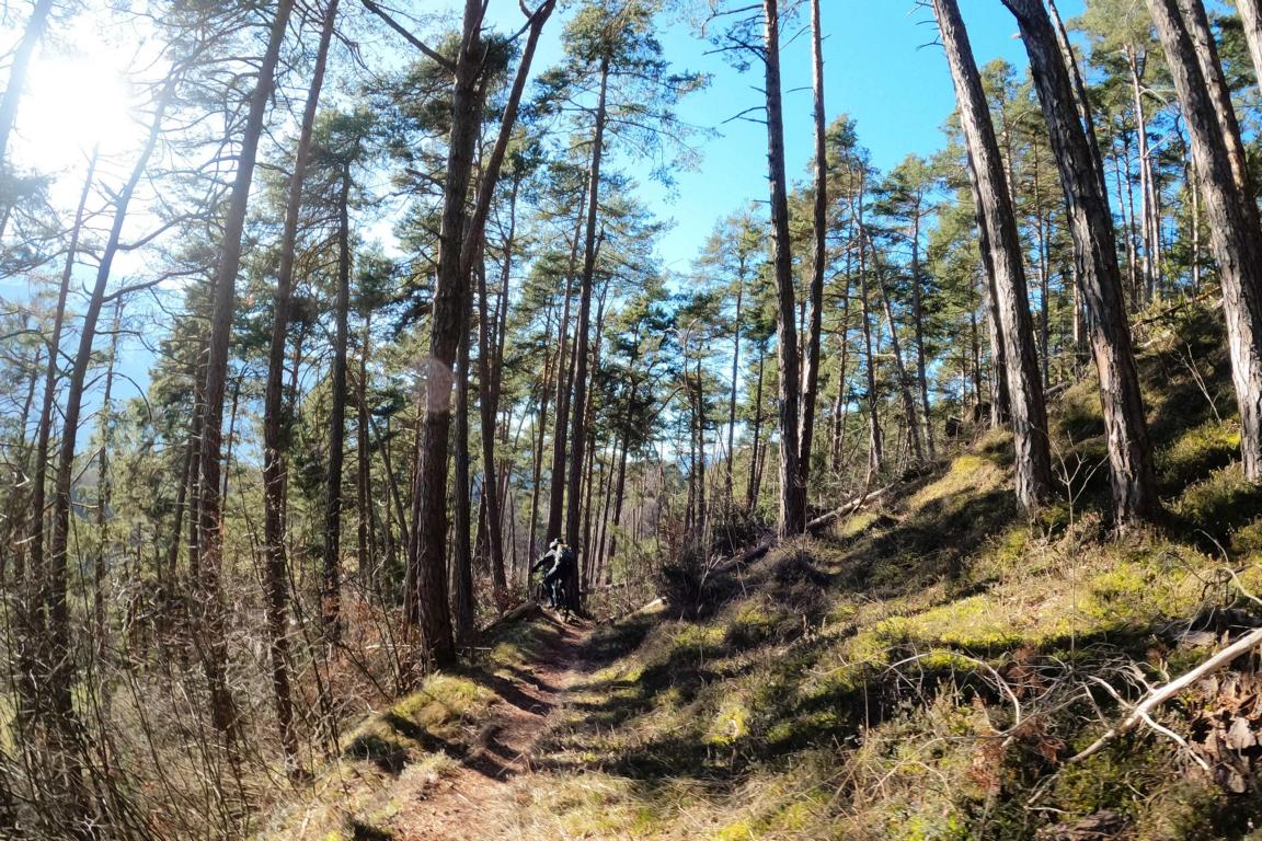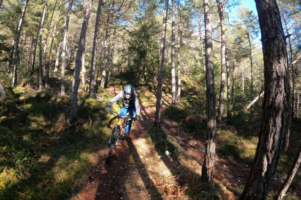 Kurz nach dem Strassberghaus führt der 92er Trail im Schwierigkeitsgrad S1/S2 auf festem Untergrund mit ein paar Spitzkehren, Wurzelstufen und einer Treppenstufe mit Spitzkehre-S3 Stelle hinunter nach Lehen. Von dort hinüber zum Berghoftrail und anschließend über den Emattrail hinunter nach Lumma. Der Schwierigkeitsgrad der beiden Trails liegt bei S1 mit ein paar leichten S2 Stellen.