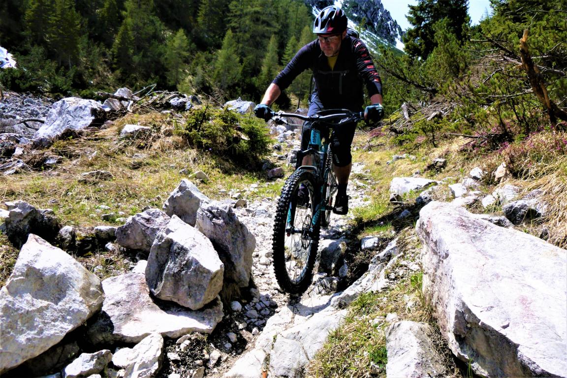 Von der Alplhütte führt der Trail fast durchgehend auf grobsteinigen, verblockten und z. T. auf sehr flachem Untergrund im Schwierigkeitsgrad S2 bis S3 zum Straßberghaus hinunter. Von dort über den 92er Trail-S1/S2 meist auf festem Untergrund mit ein paar Spitzkehren, Wurzelstufen und einer Treppenstufe mit Spitzkehre-S3 hinunter nach Lehen.