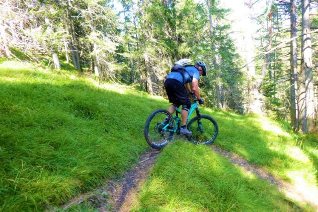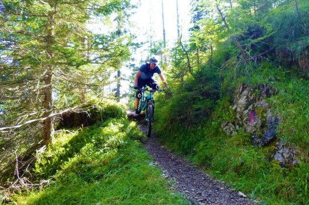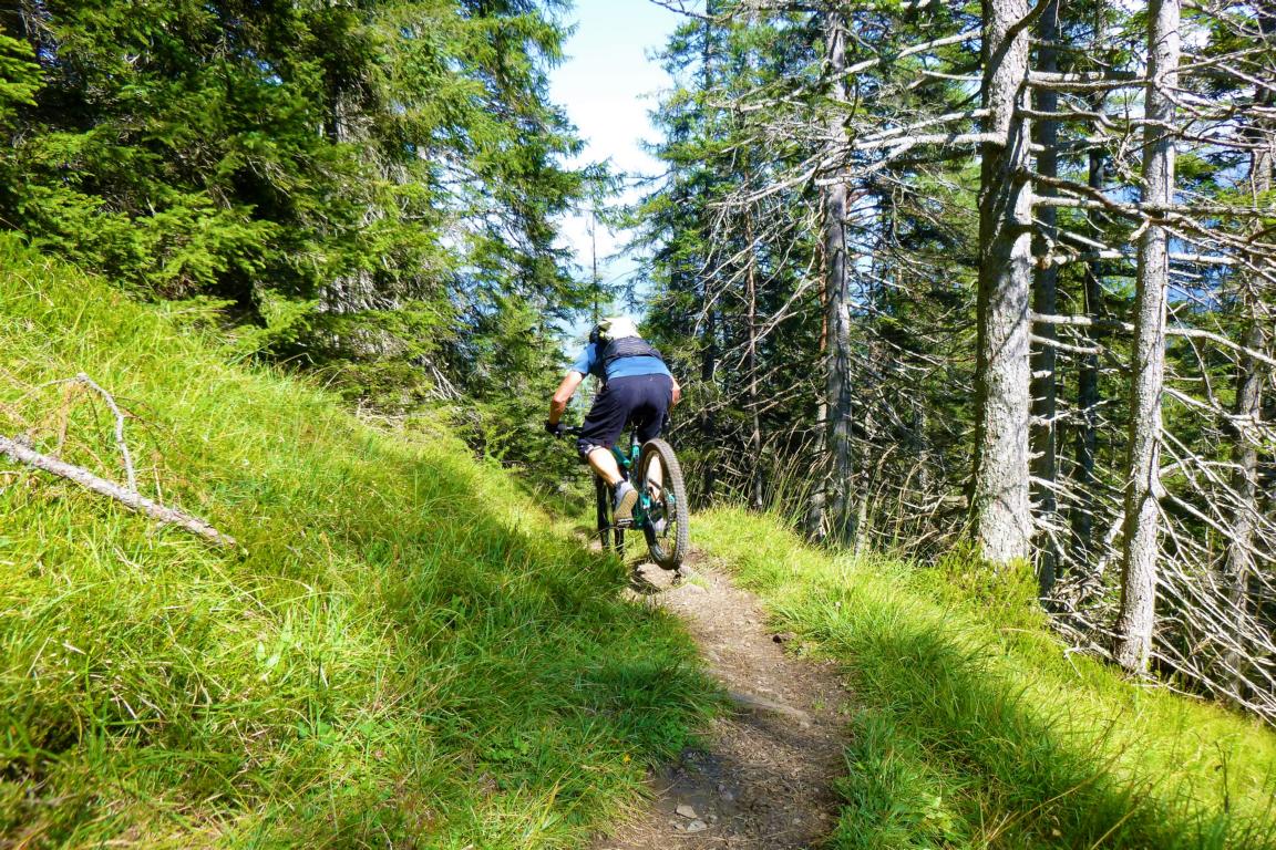 Der Alpsteig führt von der Simmeringalm bergab nach Finsterfiecht durchgehnd auf verfestigtem wurzeligem Waldboden. Dieser Trail weist abwechselnd den Schwierigkeitsgrad S3-G2 und S2-G1 auf.