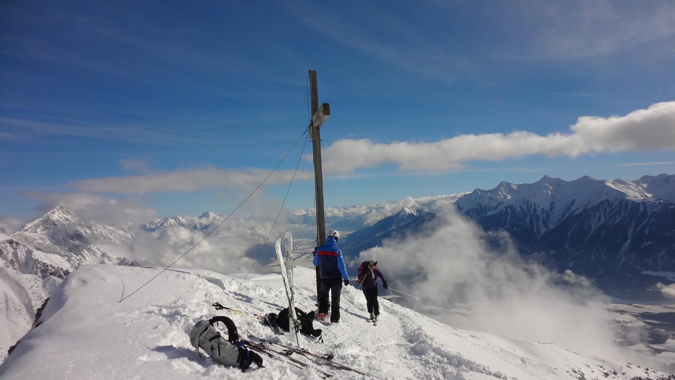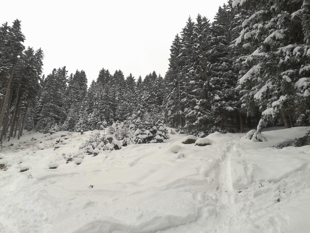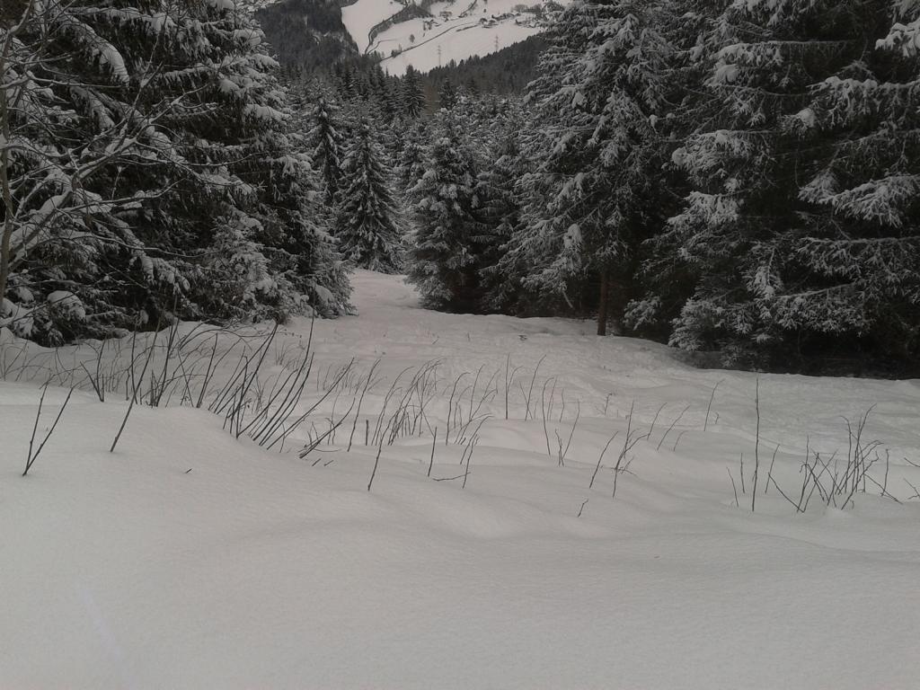 Aufstieg über die Waldschneise bei bis zu 25 cm Neuschnee. Die Abfahrt war ganz gut leider etwas wenig Unterlage deshalb waren die Steinskier von Vorteil.