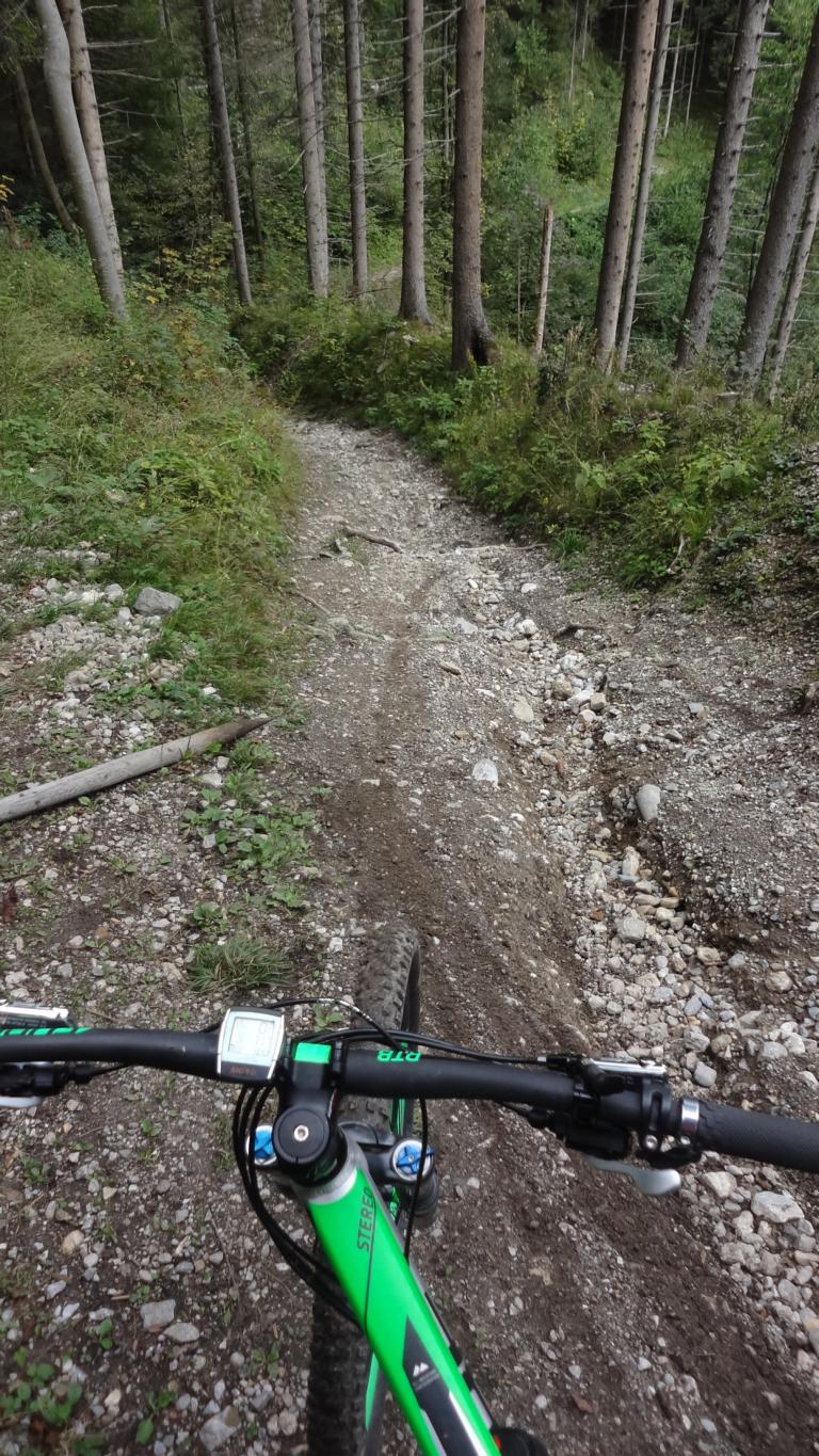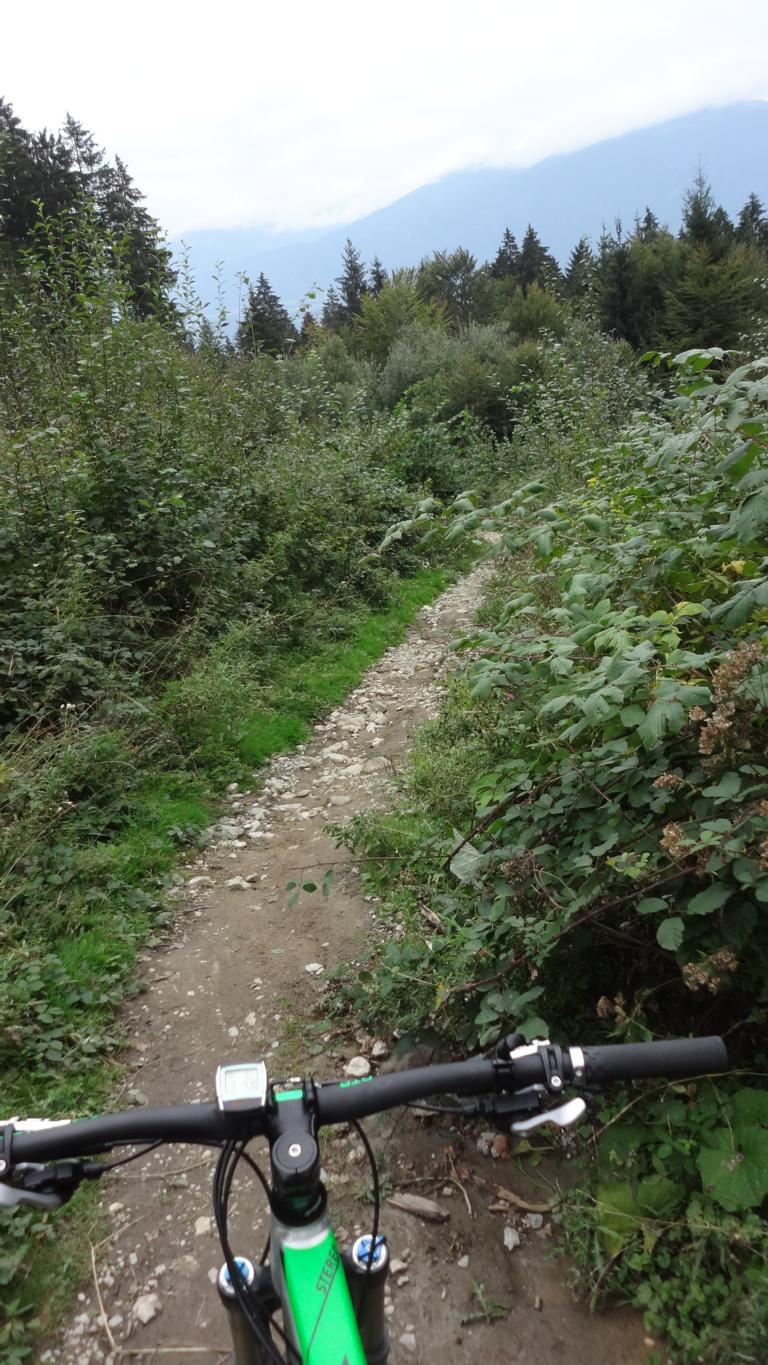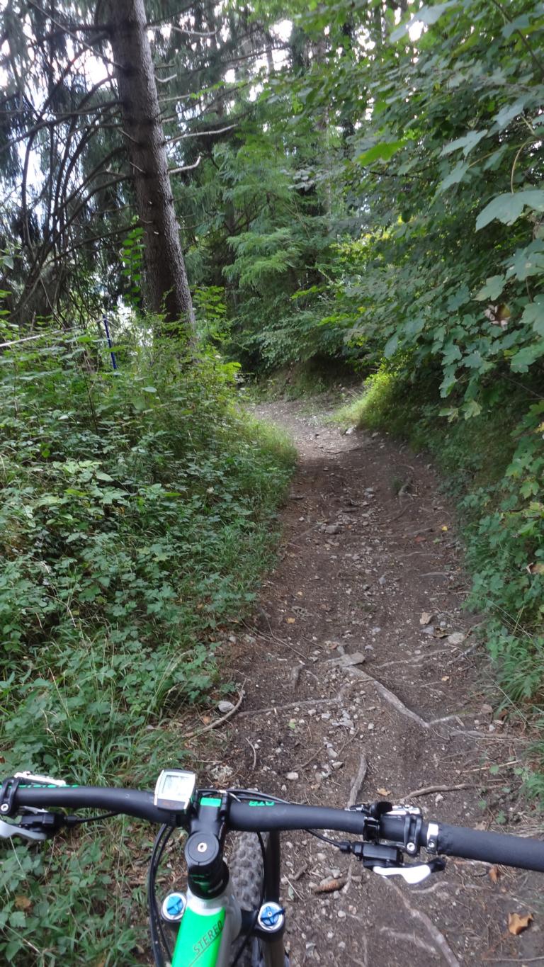 Eigentlich wollte ich von der Rumer Alm über die Guflhütte am ST14 runter nach Mühlau. Leider fand ich den Trail nicht oder es gibt ihn nicht mehr! Egal, so führ ich rüber zur Arzler Alm und kam auf einen guten Singletrail S1/S2 der direkt auf den offiziellen Mühlauer Singletrail führt. Auf den 350 Metern Höhenunterschied (mit beachtlichem Gefälle) und im Schwierigkeitsgrad- S2/S3 kommt jeder auf seine Rechnung – der Anfänger genauso wie die Spezialisten. Um die Strecke auch für gute Fahrer attraktiv zu machen sind einige Sprünge und Steilkurven eingebaut, die man aber auch problemlos umfahren kann.