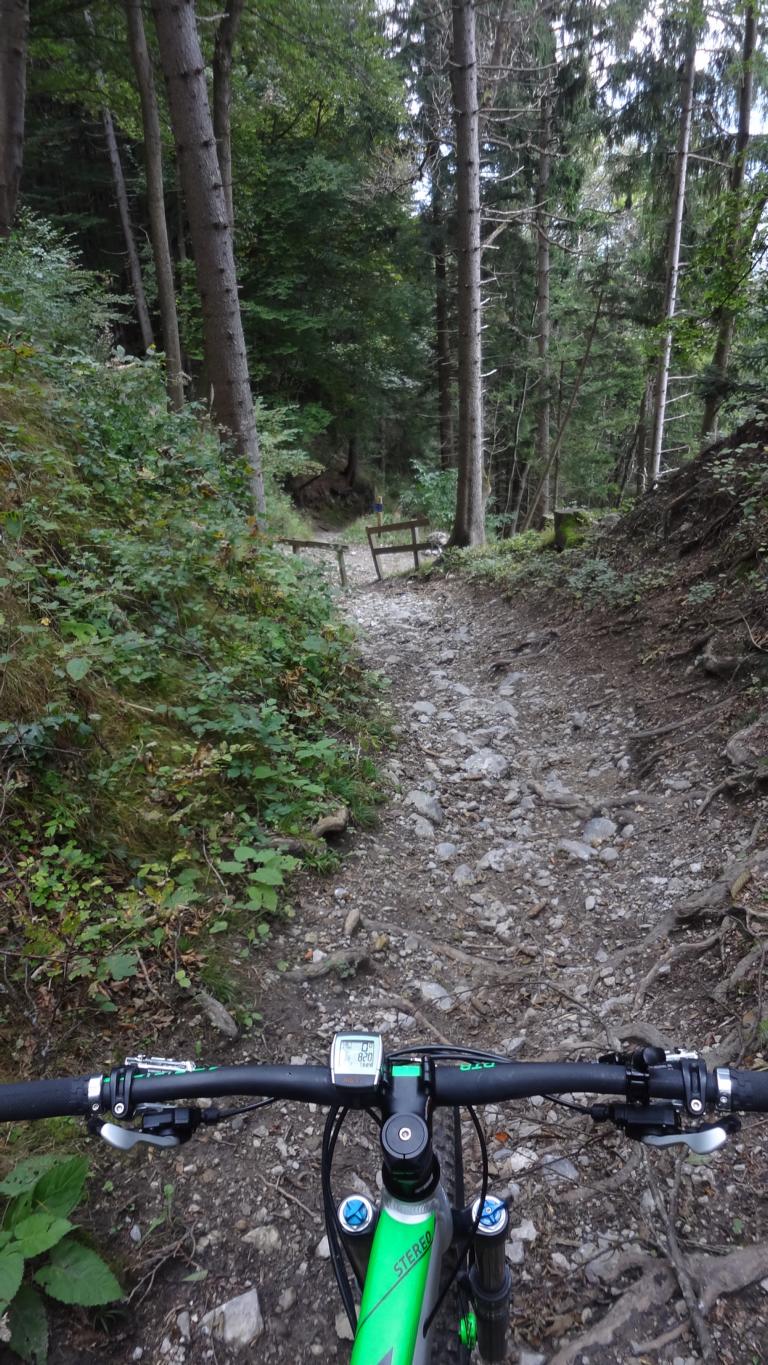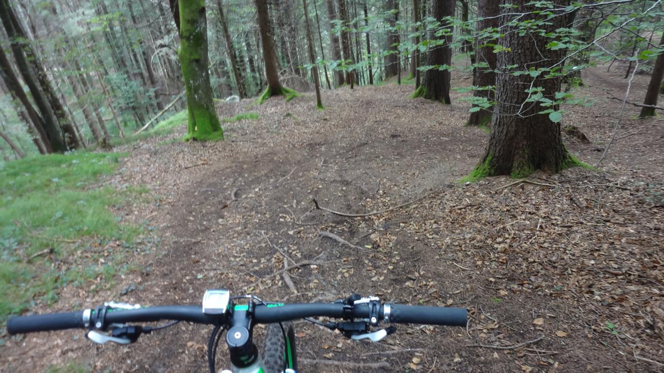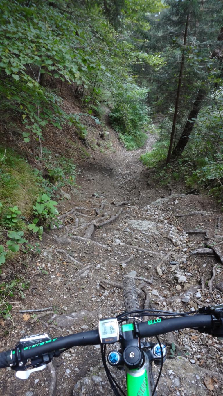Eigentlich wollte ich von der Rumer Alm über die Guflhütte am ST14 runter nach Mühlau. Leider fand ich den Trail nicht oder es gibt ihn nicht mehr! Egal, so führ ich rüber zur Arzler Alm und kam auf einen guten Singletrail S1/S2 der direkt auf den offiziellen Mühlauer Singletrail führt. Auf den 350 Metern Höhenunterschied (mit beachtlichem Gefälle) und im Schwierigkeitsgrad- S2/S3 kommt jeder auf seine Rechnung – der Anfänger genauso wie die Spezialisten. Um die Strecke auch für gute Fahrer attraktiv zu machen sind einige Sprünge und Steilkurven eingebaut, die man aber auch problemlos umfahren kann.