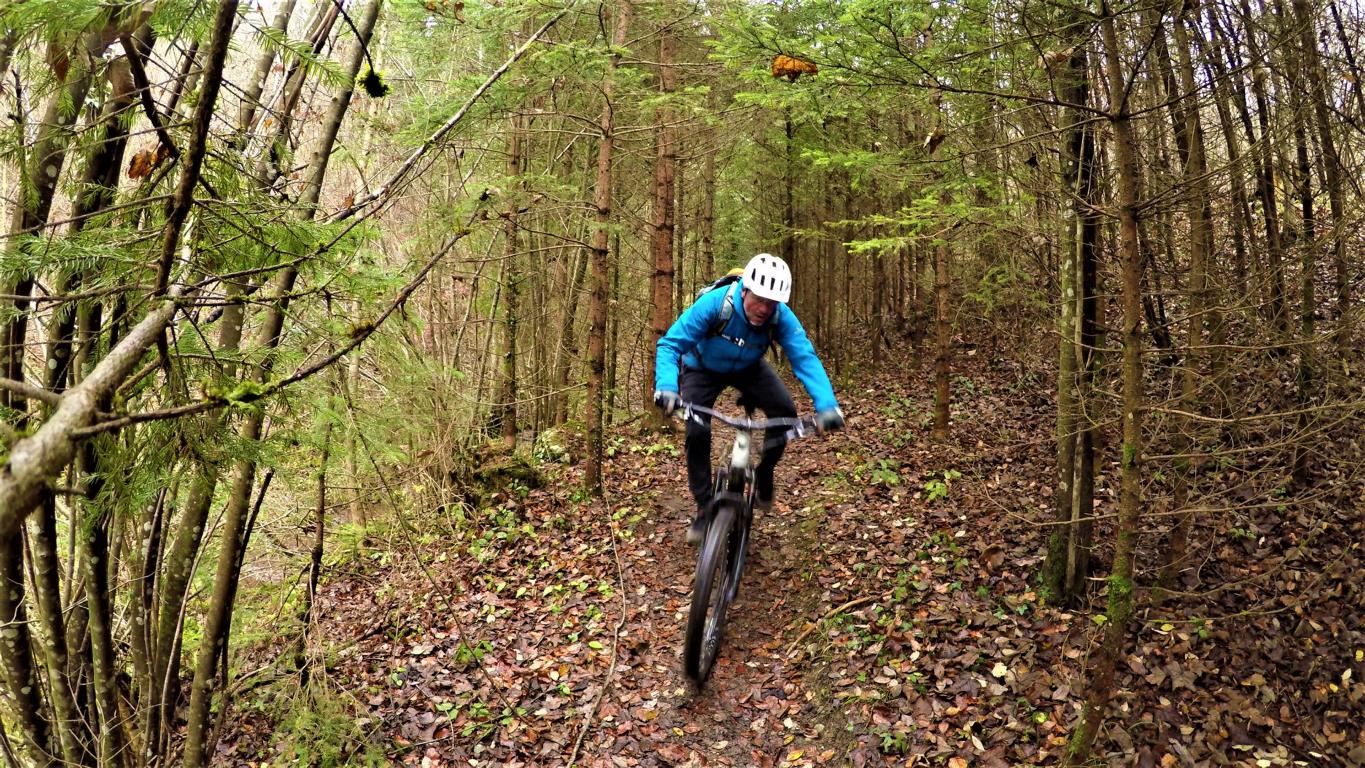 Nach dem Gramarthof rechts, führt der Ölbergtrail über wurzelige Passagen im Schwierigkeitsgrad S1/S2 mit mehreren Asphaltstufen hinunter nach St. Nikolaus.