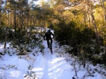 Nach dem ersten Trailabschnitt rollt man entspannt durch Finsterfiecht und folgt der Forststraße bergauf. Die verschneite Winterlandschaft sorgt hier für eine kurze Verschnaufpause, bevor das nächste Highlight wartet.