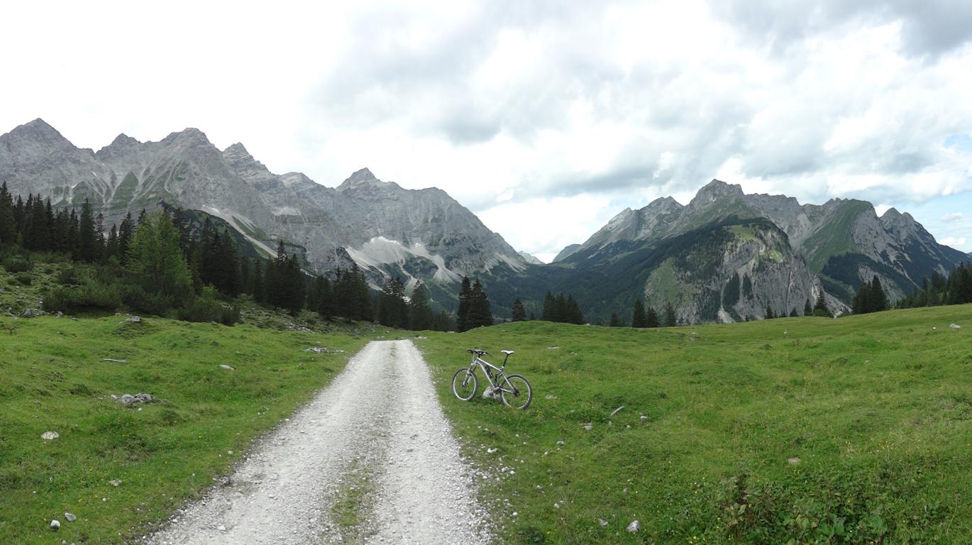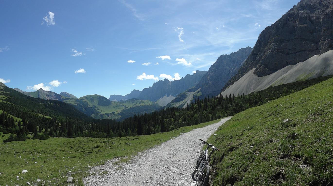 Von Scharnitz durch das Karwendeltal zum Hochalmsattel. Von dort zum kleinen Ahornboden vorbei an den Abzweigungen zum Johannes- und Risstal, über die Ladizalm weiter zur Falkenhütte und den gleichen Weg wieder zurück nach Scharnitz.