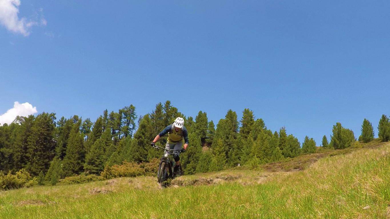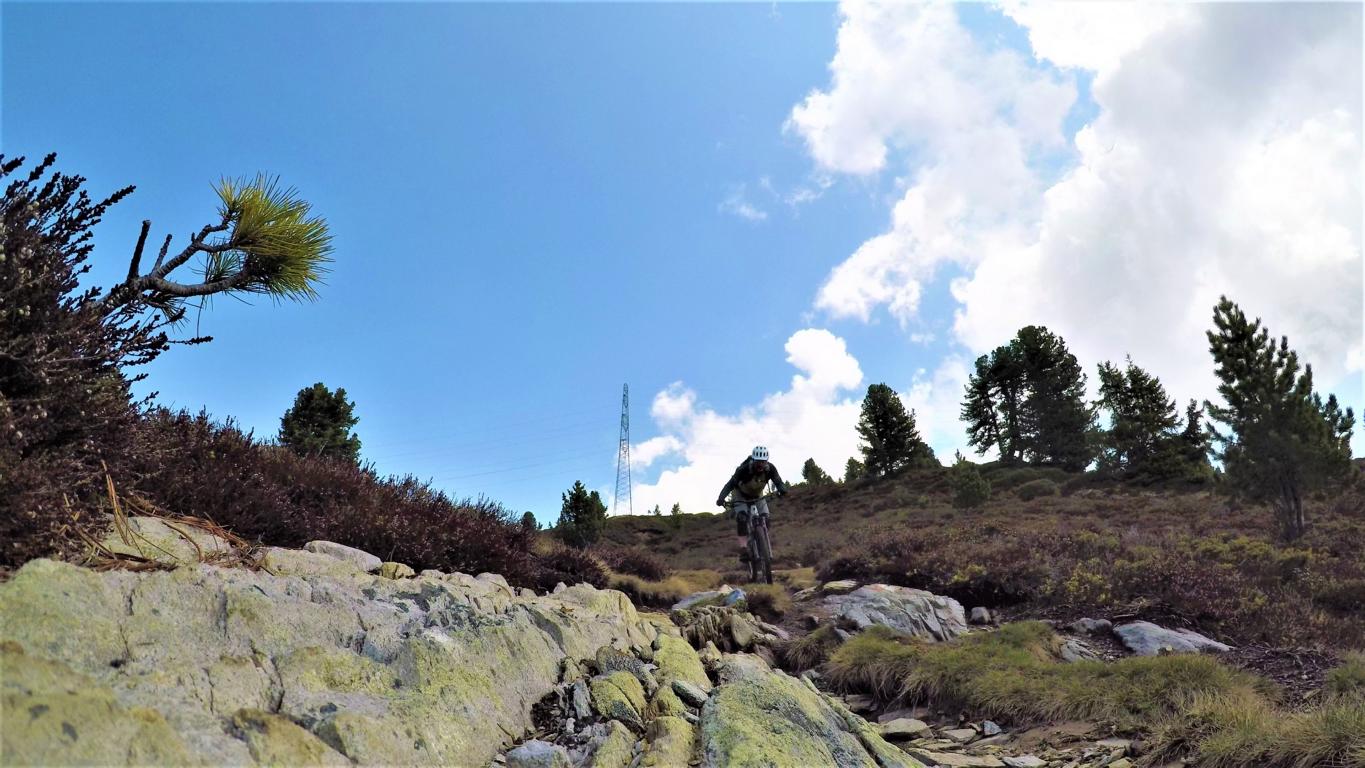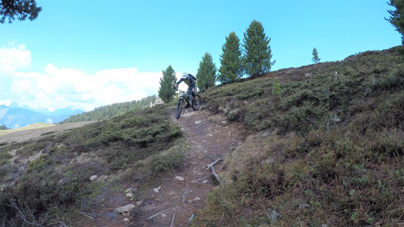 Vom Kreuz zum größten Teil auf verfestigten Untergrund im Schwierigkeitsgrad S2/G1 mit ein paar S3 Stellen übers Grünwaslkreuz hinunter nach Marlstein. Von dort führt der Knappentrail im Schwierigkeitsgrad S2- auf festem Untergrund und relativ flach hinüber zum Sattelle. Weiter führt ein S2 Trail mit kleineren Wurzel- und Felsstufen hinunter zum Ochsengarten.