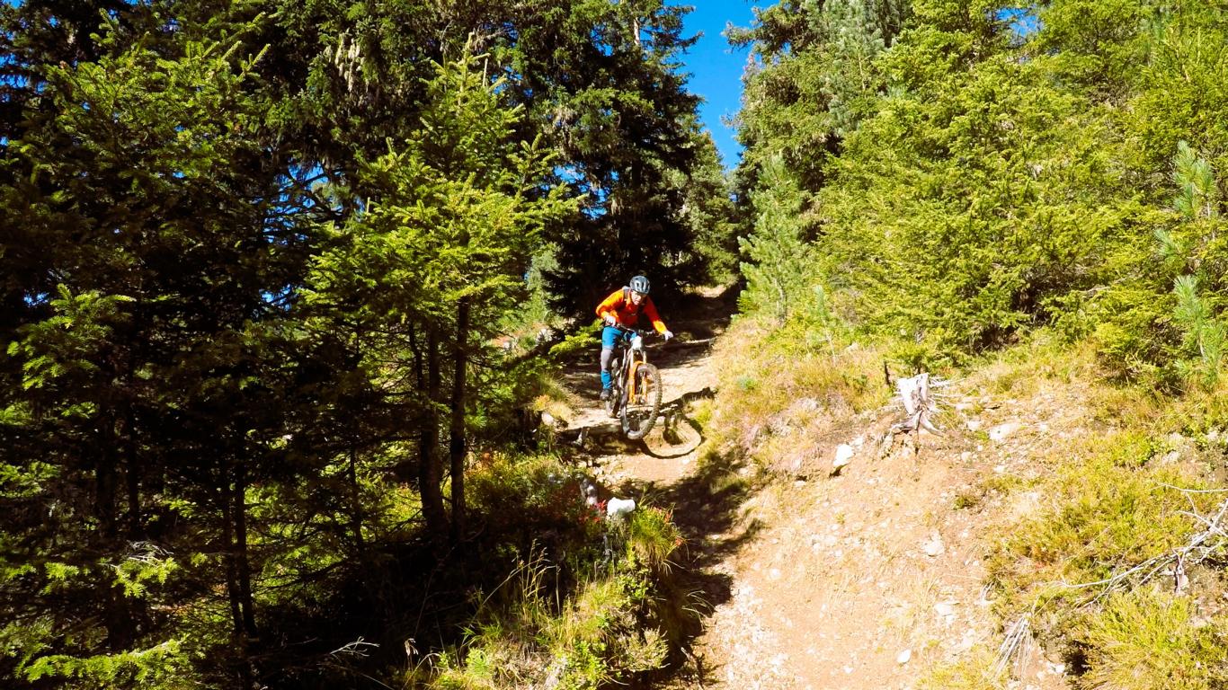 Vom Kreuz zum größten Teil auf verfestigten Untergrund im Schwierigkeitsgrad S2/G1 mit ein paar S3 Stellen übers Grünwaslkreuz hinunter nach Marlstein. Von dort führt der Knappentrail im Schwierigkeitsgrad S2- auf festem Untergrund und relativ flach hinüber zum Sattelle. Weiter führt ein S2 Trail mit kleineren Wurzel- und Felsstufen hinunter zum Ochsengarten.