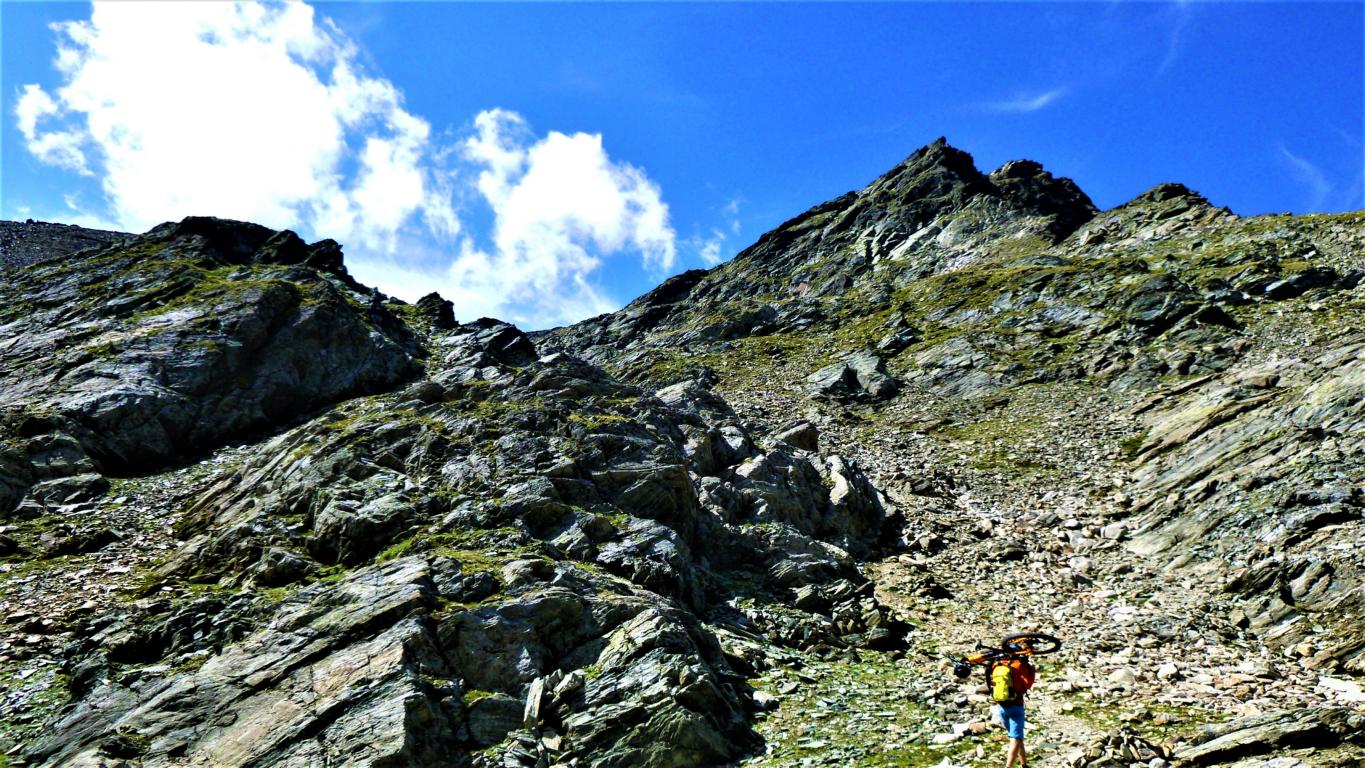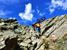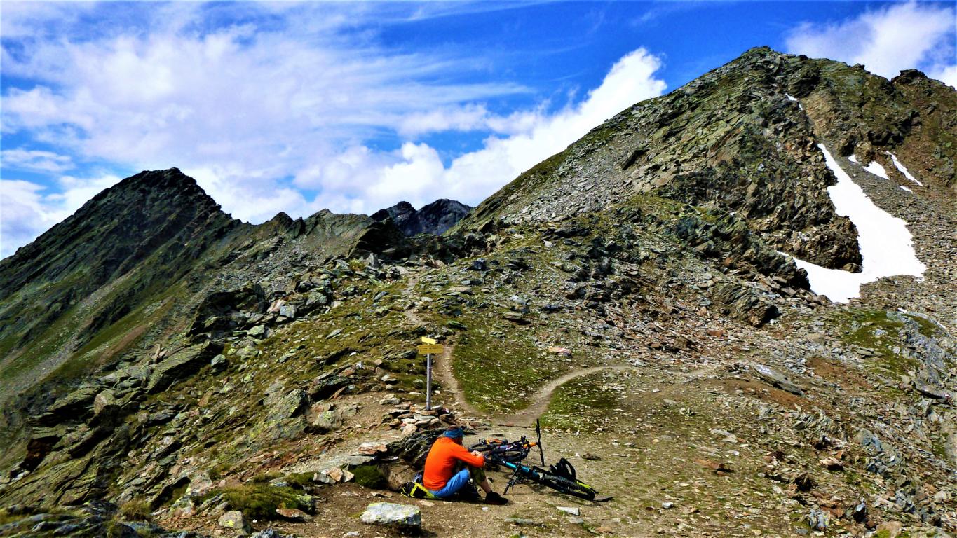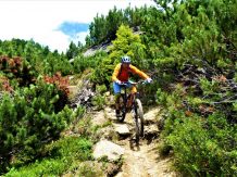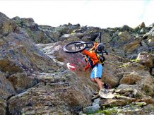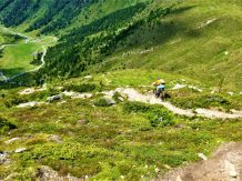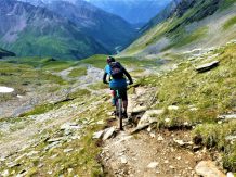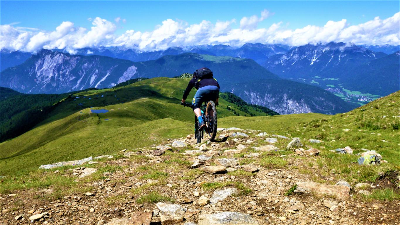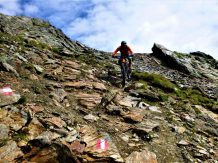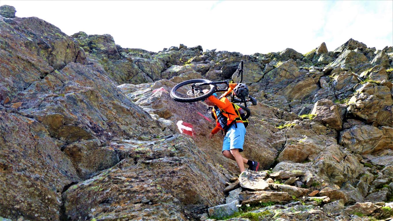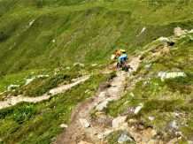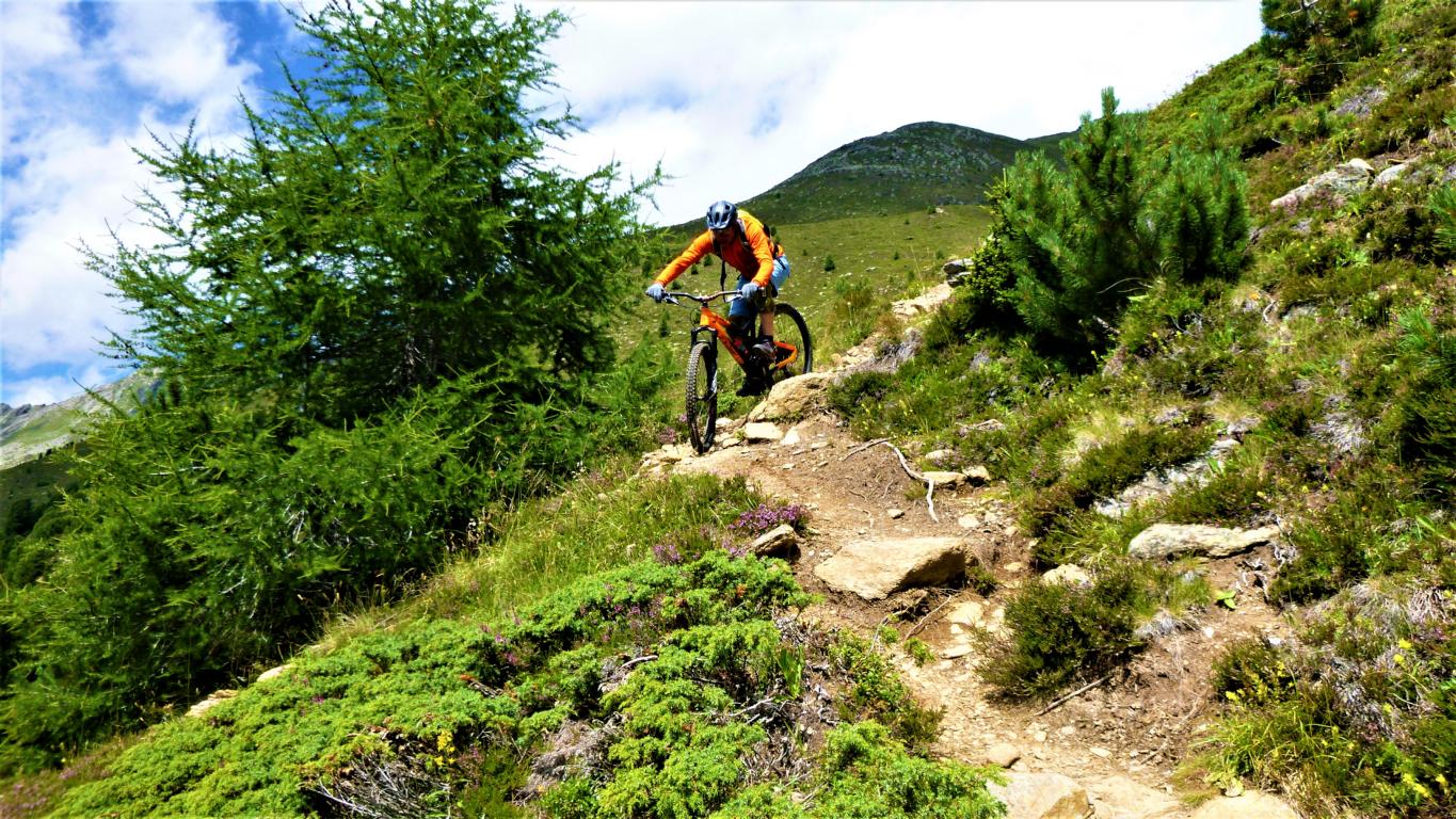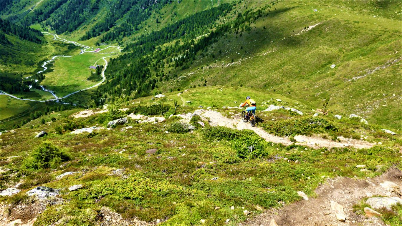 Von der Scharte führt der 146-Trail durchgehend auf grobsteinigen und verblockten Untergrund abwechselnd im Schwierigkeitsgrad S2-S3/G1 das “Weite Kar” hinaus bis es steiler wird. Von dort weiter zum größten Teil auf nicht verfestigtem, grobsteinigen und sehr verblockten Untergrund im Schwierigkeitsgrad S3/G2 mit ein paar S4/G2 Stellen hinunter zur Schweinfurter Hütte. Von der Hütte zuerst auf einen flowigen Wiesentrail, dann die Forststraße hinaus nach Niedertai. Von dort auf der Straße am Stuibenfall vorbei und weiter über den sehr schönen Trail hinunter nach Umhausen. Der Schwierigkeitsgrad des Trails liegt bei S2/G1 mit ein paar S3 und S4/G2 Stellen. Von Umhausen nach Oetz und mit dem Shuttle zurück ins Kühtai.
