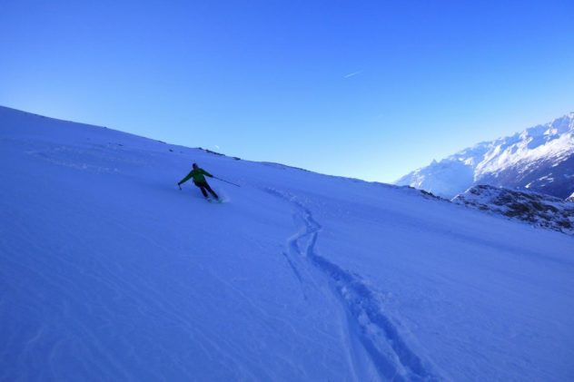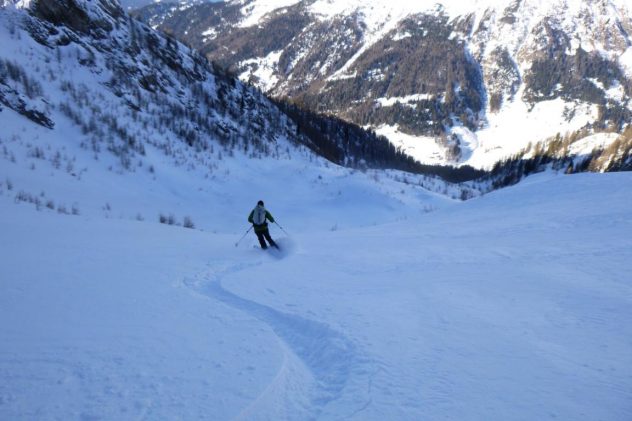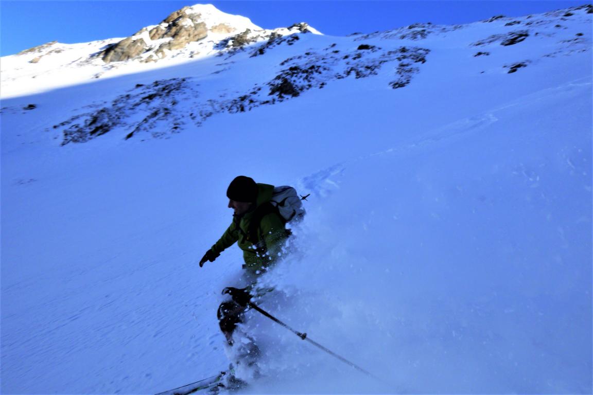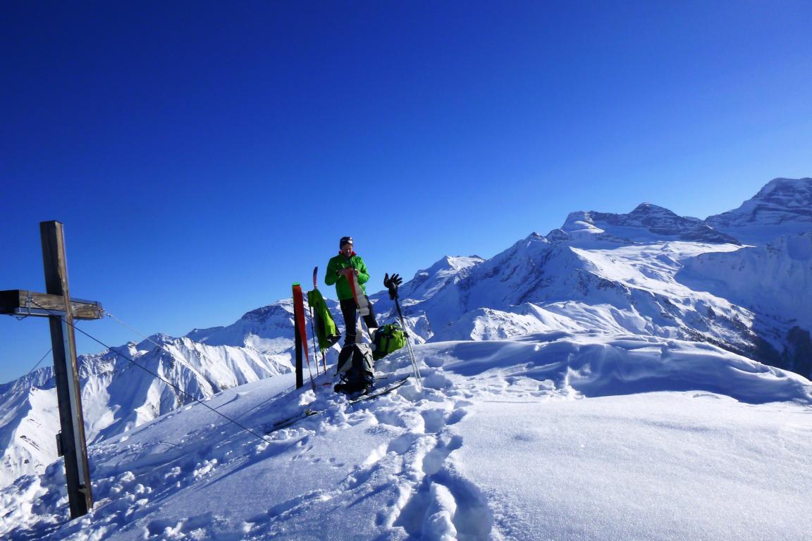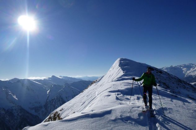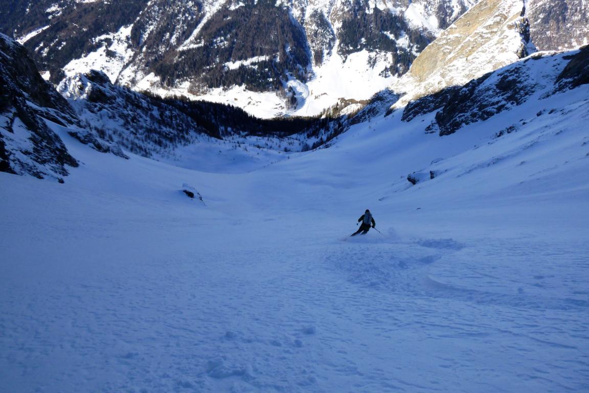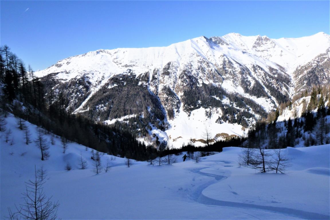 Aufstieg über die Jeneweinrinne zum Schartl und dann nach links zum Vorgipfel der Gampesspitze. Die Abfahrt erfolgte nicht über die Aufstiegsroute sondern direkt vom Gipfel in die nach Norden ziehende Parallelrinne. Diese zieht sich gleich zu Beginn, mit leicht gepresstem Pulver, recht steil hinunter wobei der Mittelteil am steilsten ist. Im unteren Bereich geht es über schönes kupiertes Gelände und Schneisen bis zur Forststraße. Vom Gipfel bis hinunter zum Parkplatz sehr gute Schneeverhältnisse.