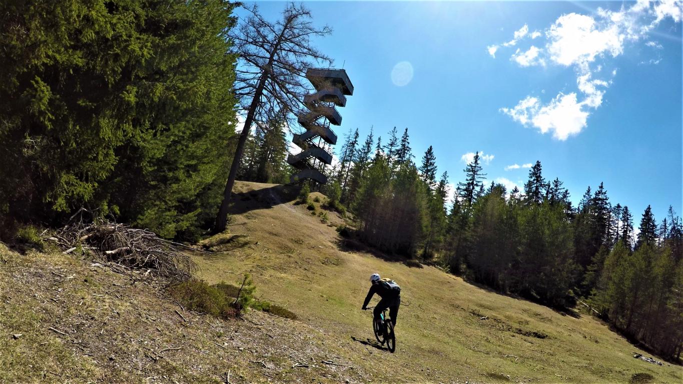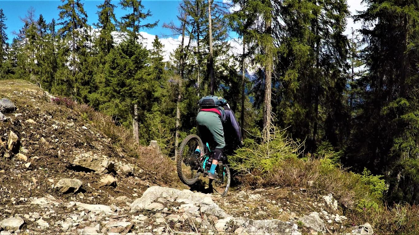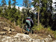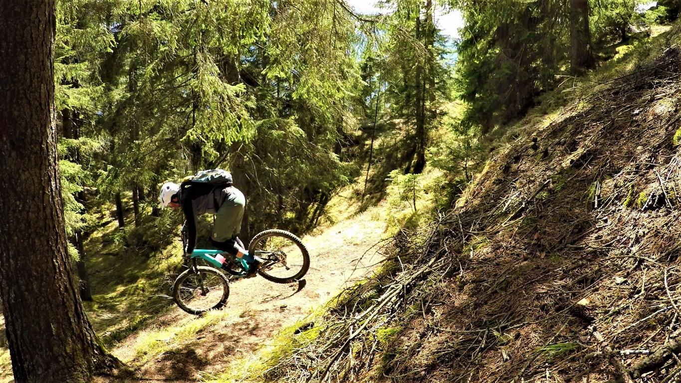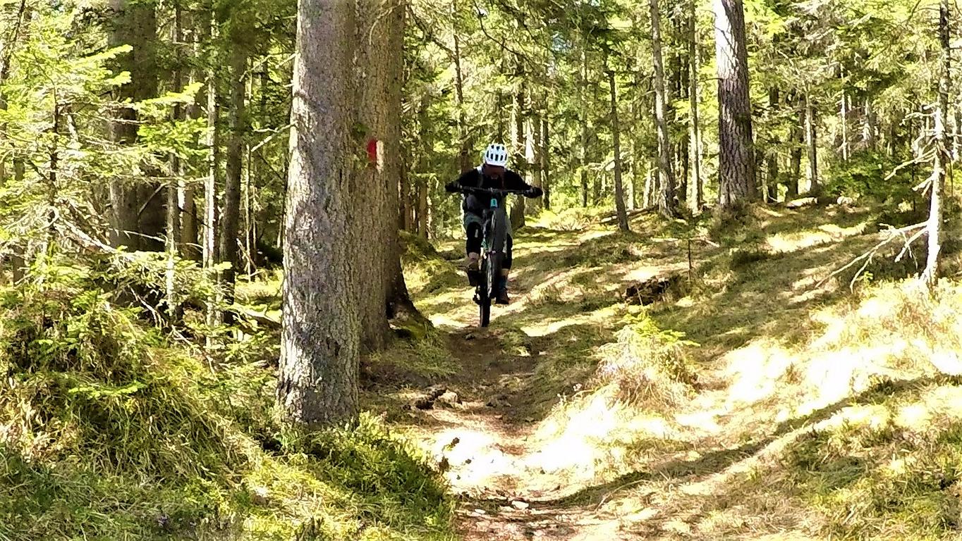 Der 5er-Trail führt durchgehend auf festem, wurzeligen Waldboden, anfangs sehr flach im Schwierigkeitsgrad S1/G1 dann steiler und ausgesetzt im Schwierigkeitsgrad S2/G3 mit ein paar S3/G2 Spitzkehren bis knapp nach der “Schönen Aussicht” hinunter zur Forststraße. Eine einzige steile Stelle mit höheren Stufen, im Absturzgelände, weist den Schwierigkeitsgrad S3/G4 auf.