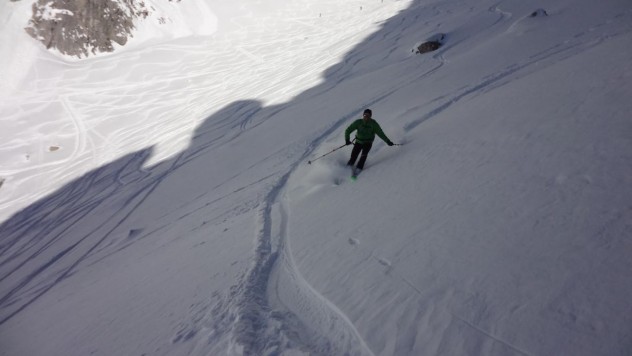Das war heute der perfekte Tag: Super Wetter, traumhafter Pulver und …………….!