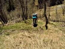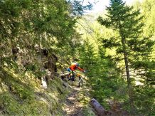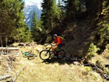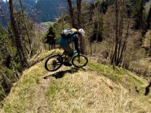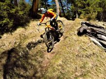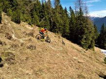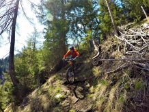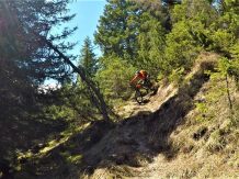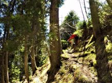 Der Trail führt auf festem Untergrund mit vielen engen Spitzkehren hinunter nach Vergör. Die Kehren sind super eng, das Hinterrad versetzen ist zwingend und deshalb mit S3 zu bewerten. Von Vergör weiter über wurzeligen Waldboden abwechselnd im Schwierigkeitsgrad S1/S0 zum Gröbenhof.