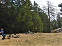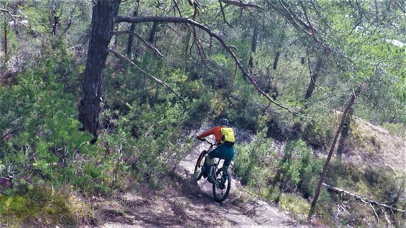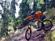 Der 5er-Trail führt durchgehend auf festem, wurzeligen Waldboden, anfangs sehr flach im Schwierigkeitsgrad S1/G1 dann steiler und ausgesetzt im Schwierigkeitsgrad S2/G3 mit ein paar S3/G2 Spitzkehren bis knapp nach der “Schönen Aussicht” hinunter zur Forststraße. Eine einzige steile Stelle mit höheren Stufen, im Absturzgelände, weist den Schwierigkeitsgrad S3/G4 auf. Dann kurz auf der Forststraße weiter bis zur dritten Kehre. Von dort führt der Fieberbach-Flowtrail S1/G1 auf festem Untergrund hinunter nach Mötz.