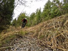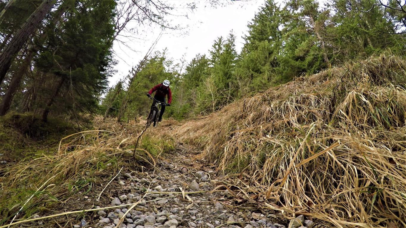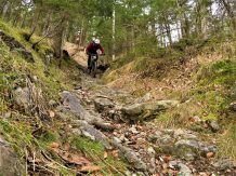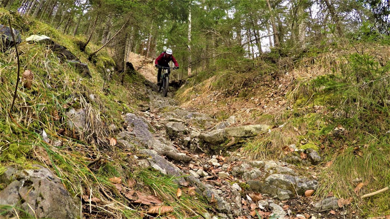 Je nachdem welchen Trail man gerade erwischt, heute erwischte ich einen etwas schwierigeren. Der Trail bergab führt zum Teil auf grobsteinigem Untergrund im Schwierigkeitsgrad S2 mit mehren S3 Stellen bis zum Schlosshof. Der Wendelintrail führt auf festem Untergrund über mehre schwierigeren Wurzelpassagen hinunter nach Rum.