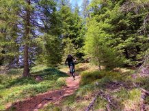 Von der Hochasteralm führt der Trail durchgehend auf festem wurzeligen Waldboden im Schwierigkeitsgrad S2/G1 zum Plattenrain. Von dort führt der Trail abwechselnd im Schwierigkeitsgrad S1/G1 und S2/G1 über den Burgstall zurück nach Arzl.