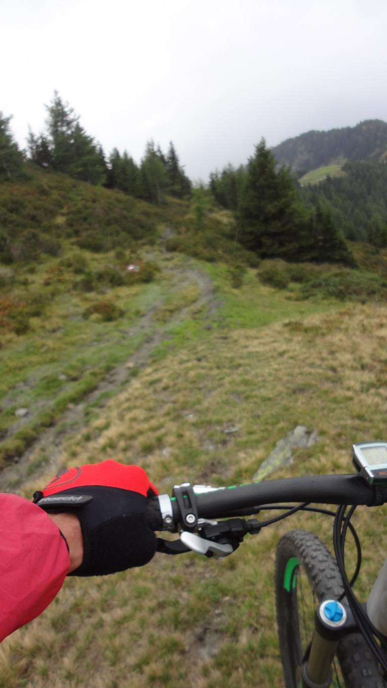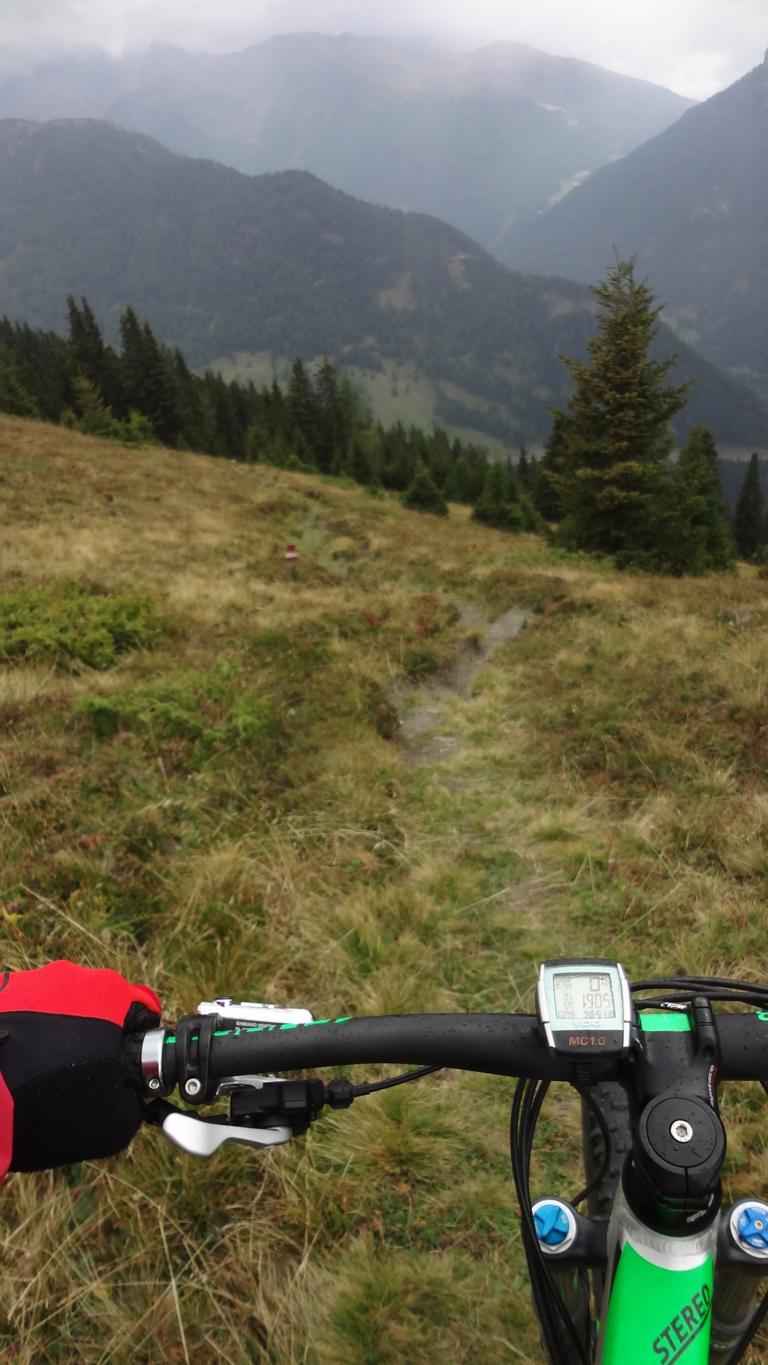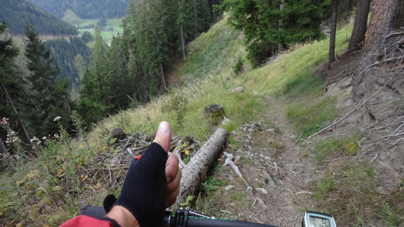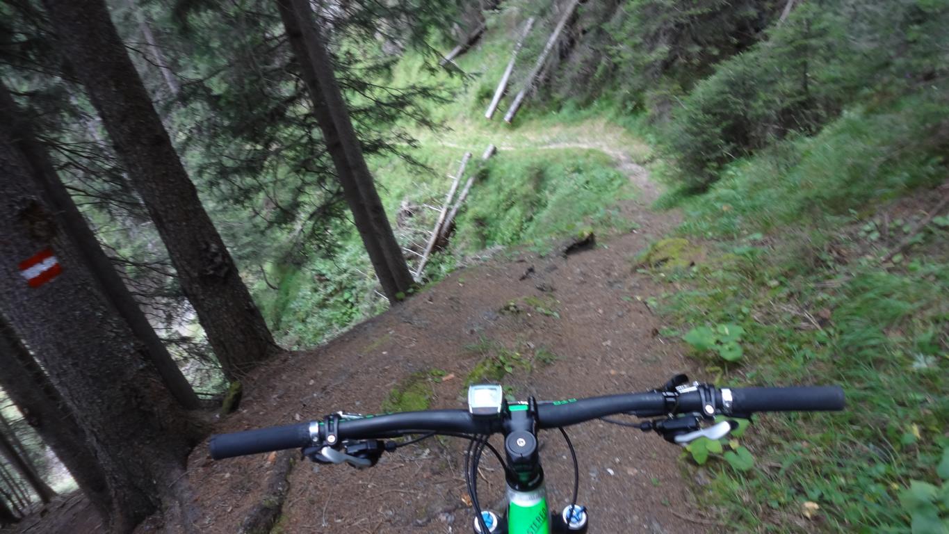Von St. Jodok über die Unterleite hinauf zur Oberleite. Von dort weiter bis nach Knoten. Bei der Hütte links den ST37A-S2 abwechselnd schiebend und fahrend bis zum Hochgeneinerjoch. Der Singletrail-ST39 vom Joch über den Hochgeneinerhof bis nach St. Jodok ist durchgehend mit S2/S3 zu bewerten.