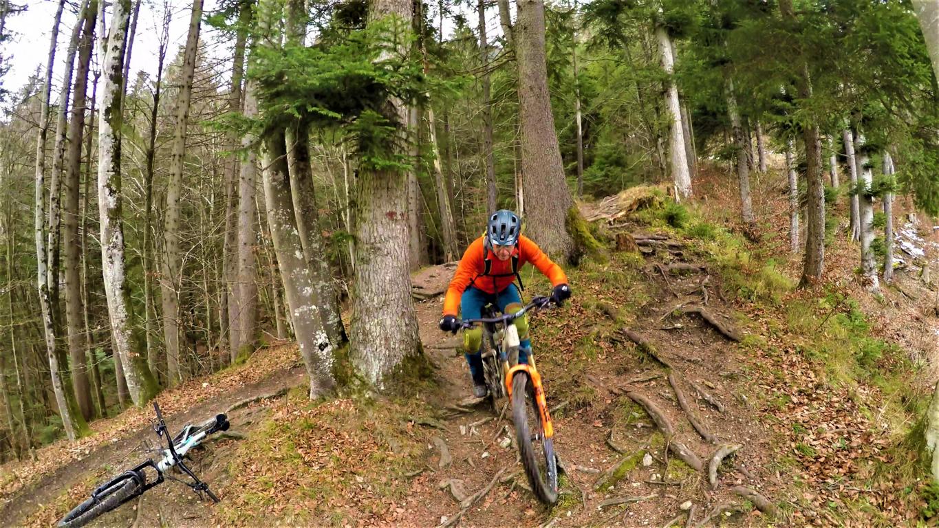 Anfangs führt der 8er Trail auf wurzeligen Waldboden im Schwierigkeitsgrad S2 und dann weiter auf einen S0-Trail nach Gramart. Von dort, nach dem Gramarthof rechts, führt der Ölbergtrail über wurzelige Passagen im Schwierigkeitsgrad S1/S2 und über mehrere Treppen hinunter nach St. Nikolaus.