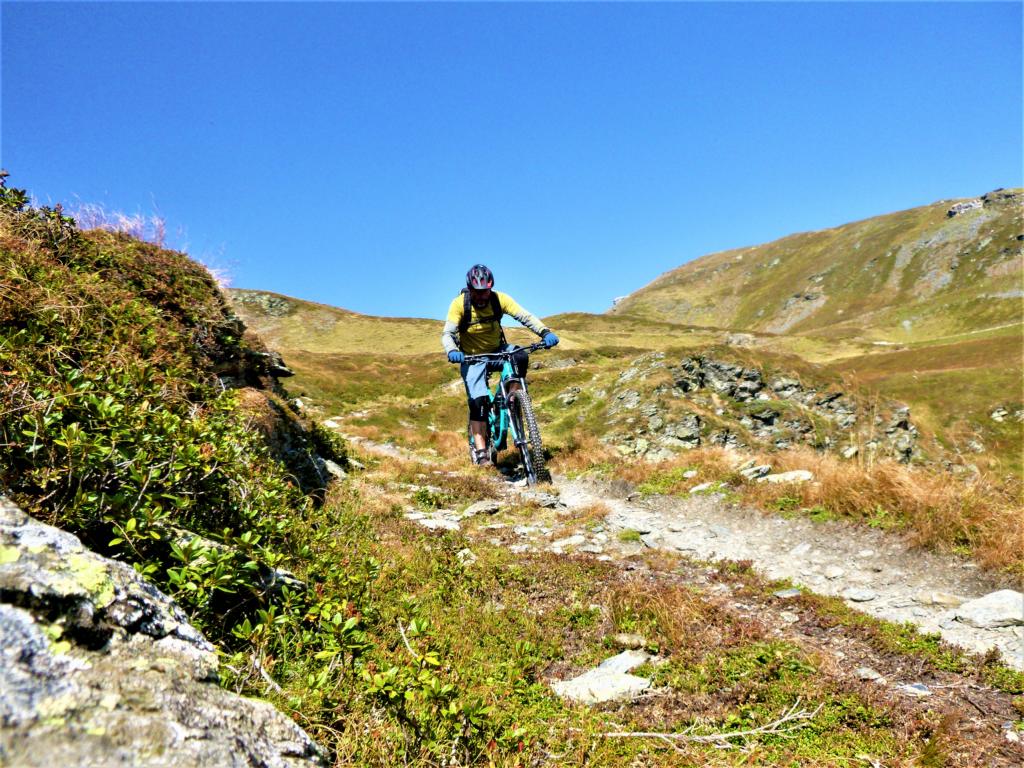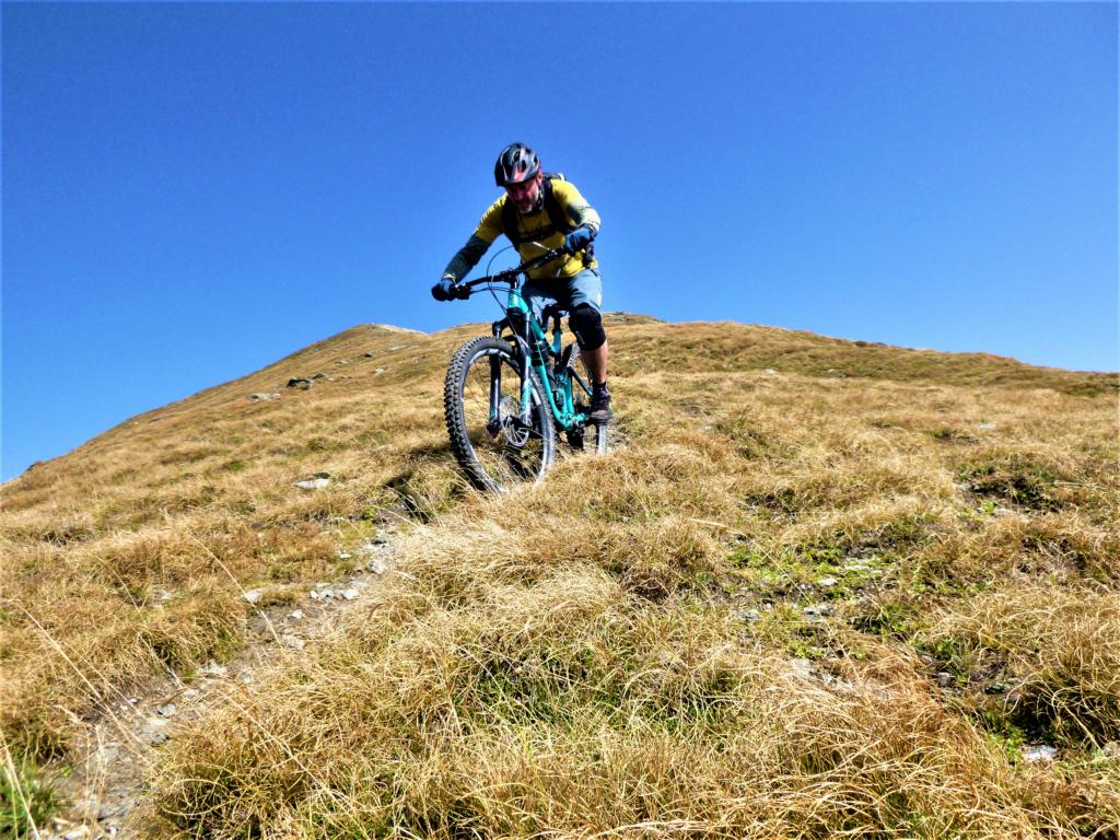 Abfahrt vom Gipfelkreuz meist auf lockerem Untergrund im Schwierigkeitsgrad S2/G1 mit ein paar S2+/G1 Stellen hinunter zum Forchwald. Von dort weiter über den sehr flowigen S1-Trail auf festem Untergrund zum Giggelberg.