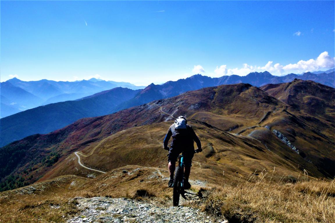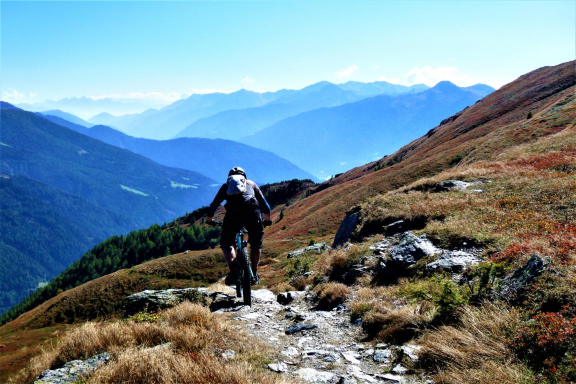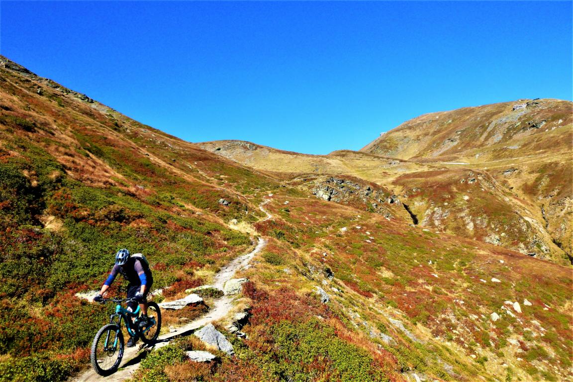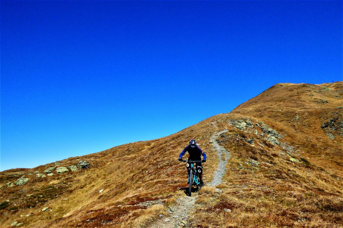 Abfahrt vom Gipfelkreuz auf verfestigten Untergrund im Schwierigkeitsgrad S2/G1 mit ein paar S2+/G1 Stellen hinunter zum Forchwald. Von dort weiter über den sehr flowigen S1-Trail auf festem Untergrund zum Giggelberg.