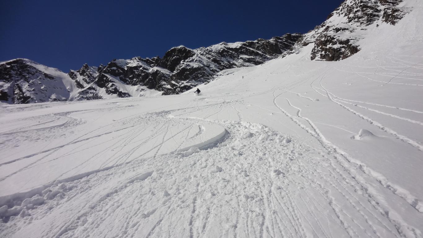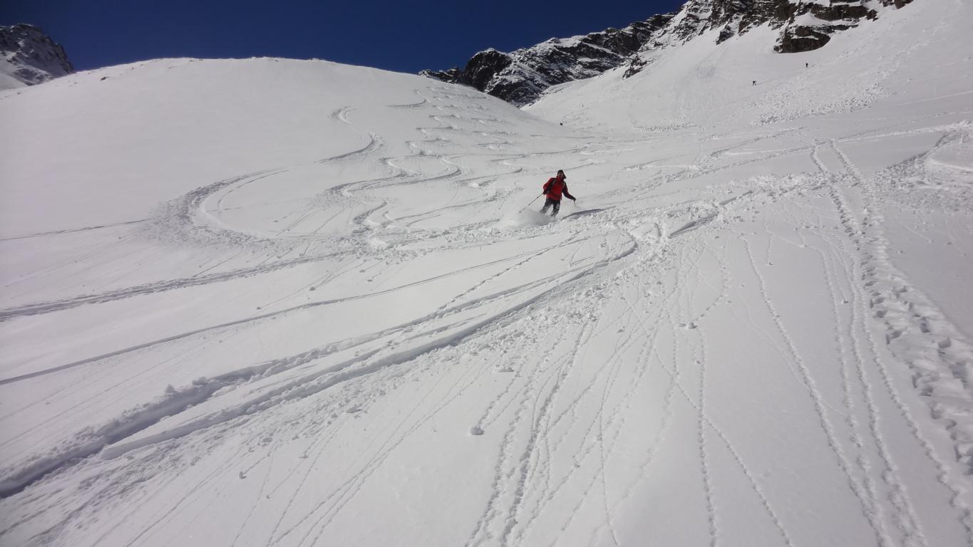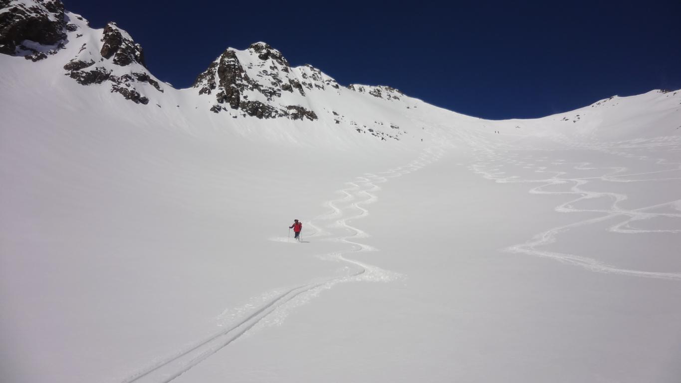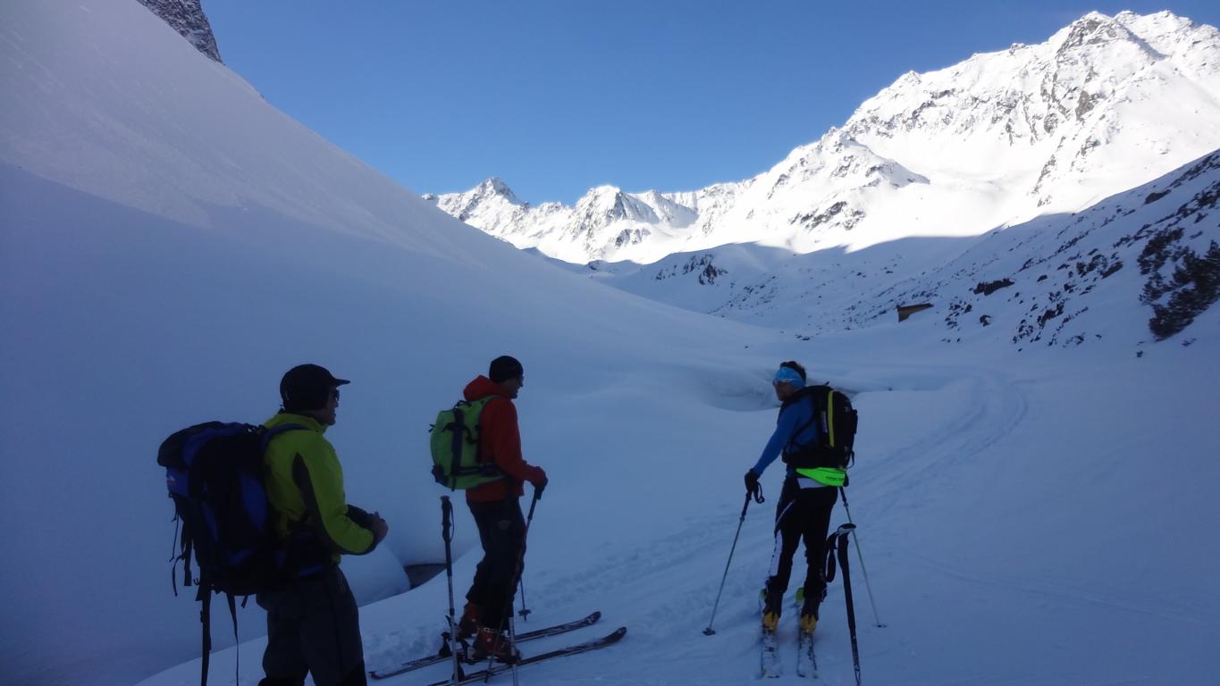 Am Samstag mit Andi, Robert und Hannes auf den Hohen Seeblaskogel. Gute Verhältnisse bei der Abfahrt ca. 15 cm Neuschnee. Genuss vom Gipfel bis ins Längental, über 1.000 Hm bei zum Teil gutem Pulver. Teilweise steile Hänge, die Tageserwärmung ist zu berücksichtigen.