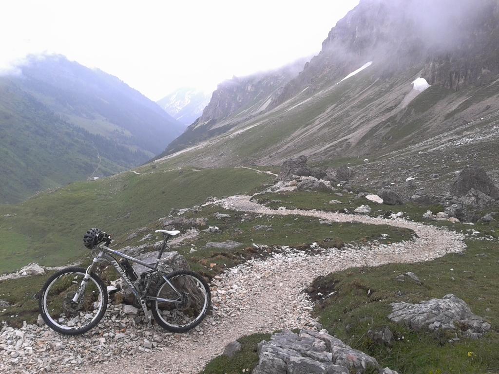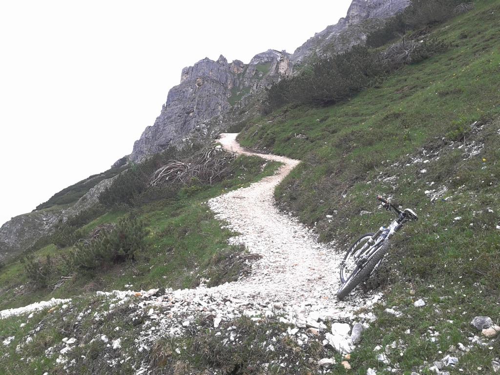 Nach der gestrigen Besichtigung des neuangelegten Mountainbike-Trails zur Innsbrucker Hütte, ging es heute durchs Pinnistal zur Karalm und den Trail hinauf. Er ist, bis auf ein paar Spitzkehren, zu 100% befahrbar. Die Spitzkehren sind, für mich, bei der Auffahrt leichter zu fahren als bei der Abfahrt.