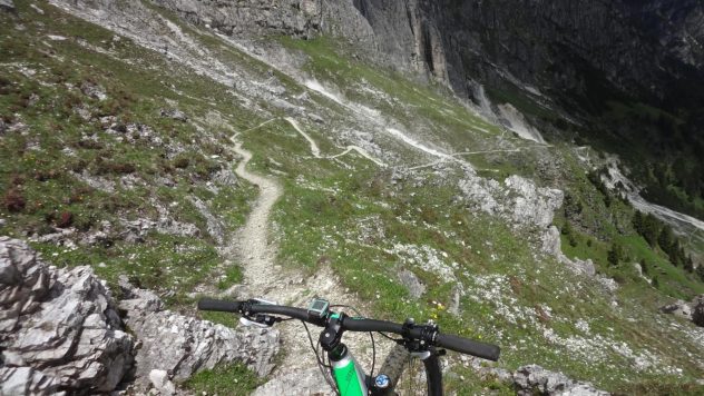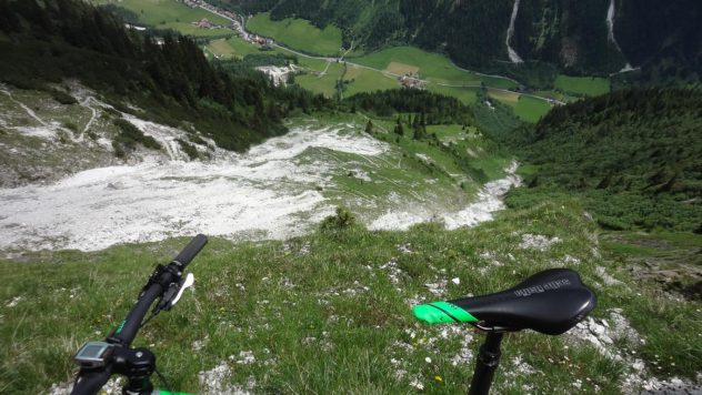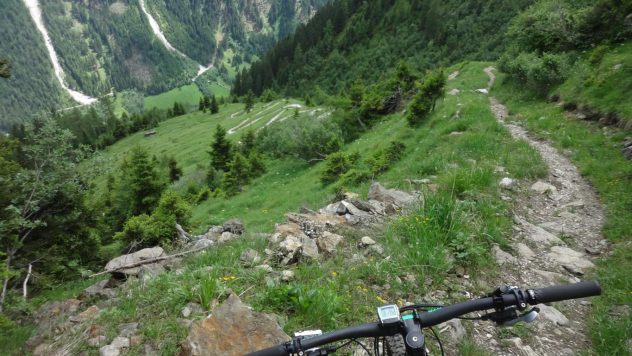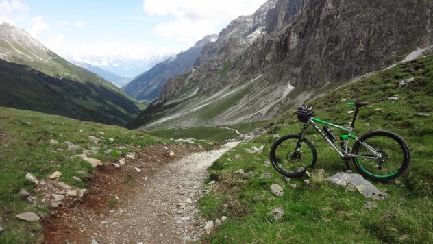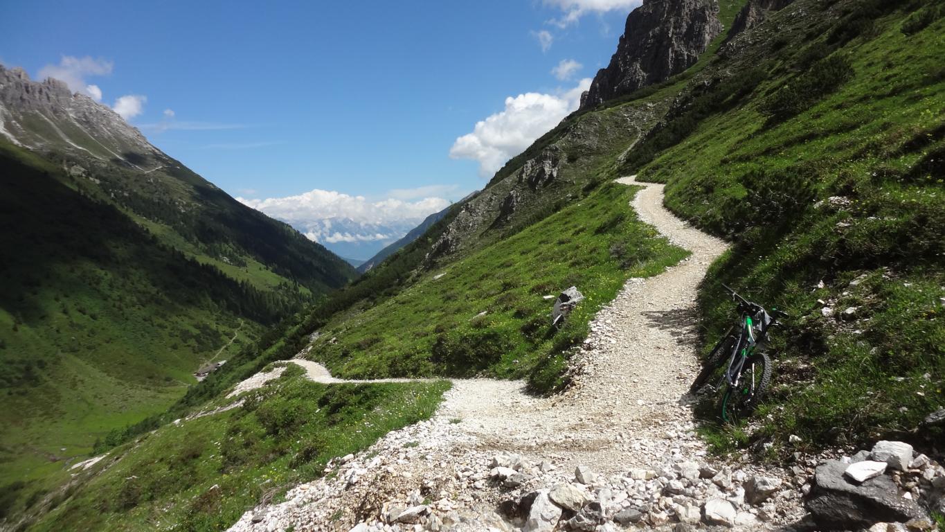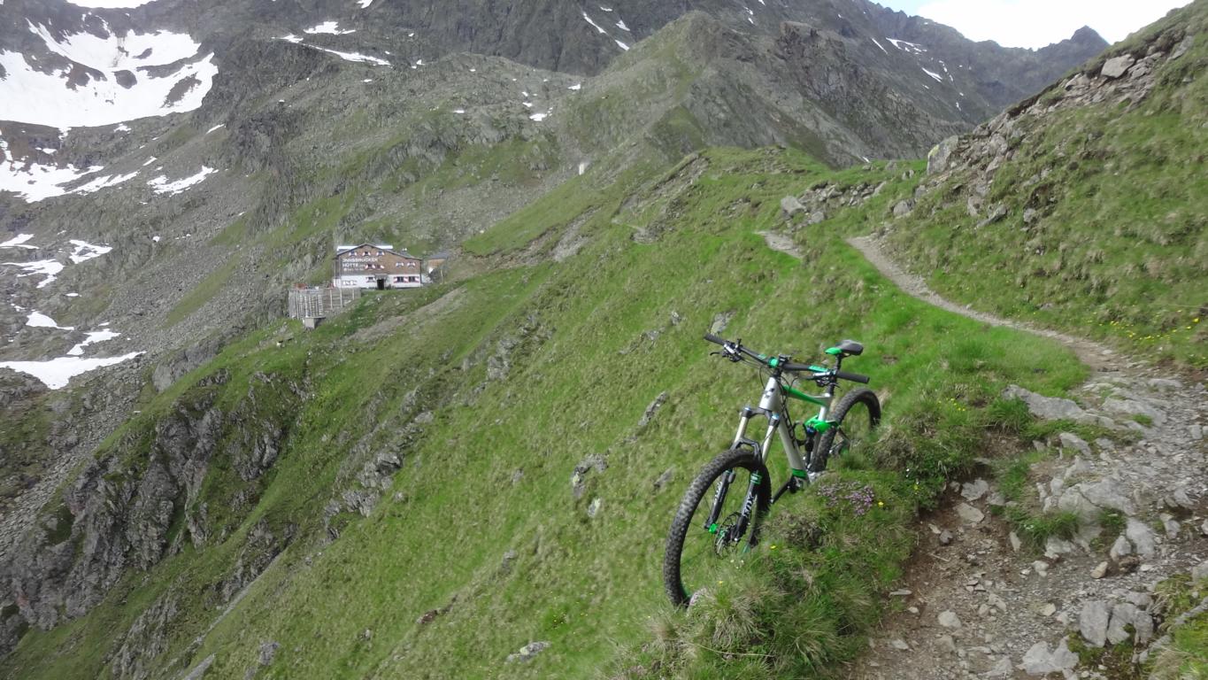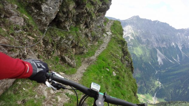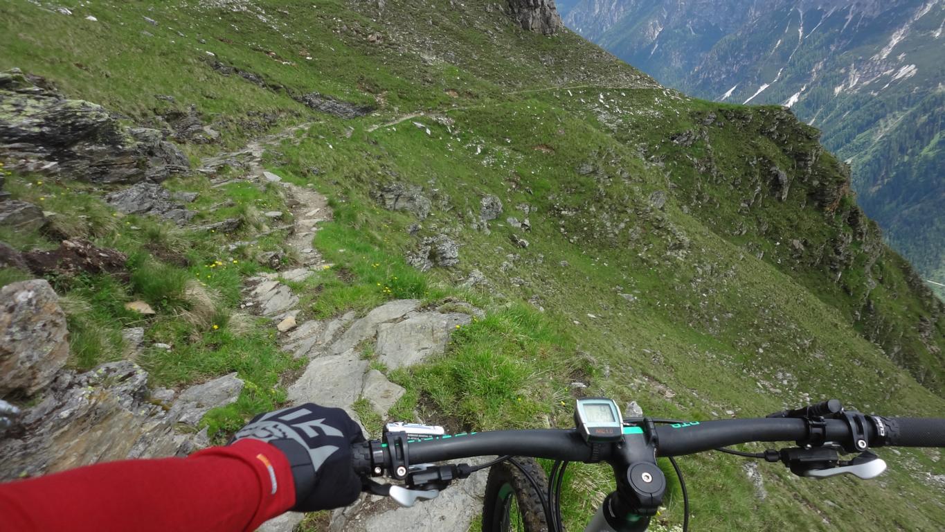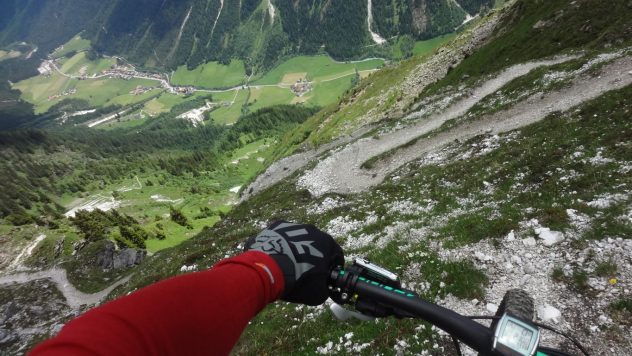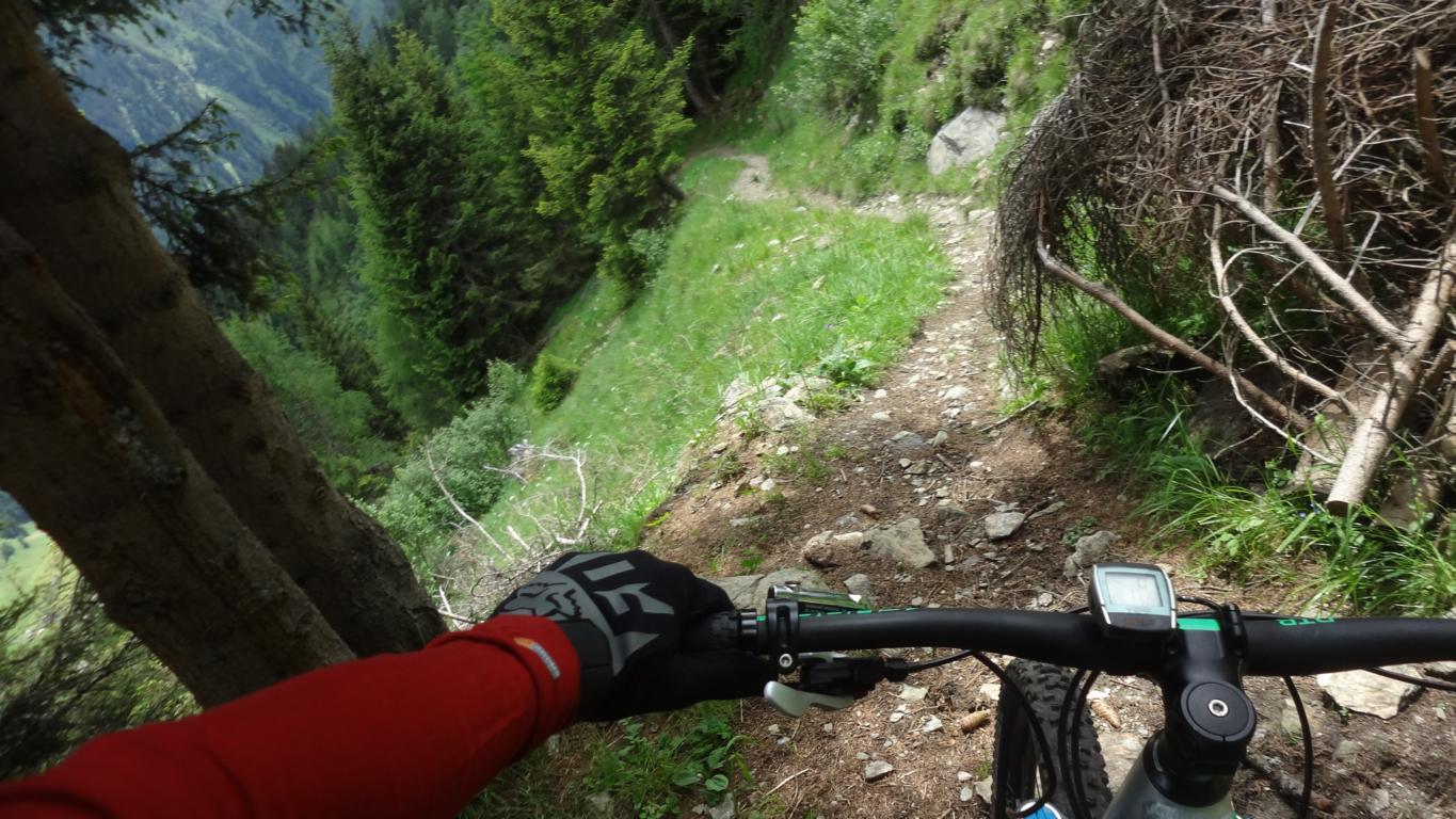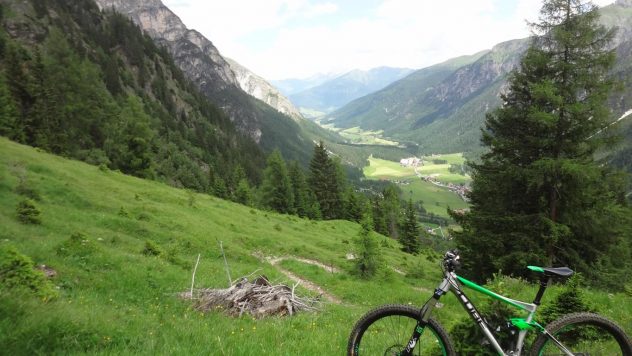 Von Neder durchs Pinnistal zur Karalm und den Trail hinauf zur Innsbrucker Hütte. Der Trail ist, bis auf ein paar Spitzkehren und steile Rampen, zu 90% befahrbar. Abfahrt über den ST123 anfangs sehr ausgesetzt im Schwierigkeitsgrad S2-G5. Weiter führt der Trail auf losen Schotter und über große Steine im Schwierigkeitsgrad S3-G4 und Stellen mit S4-G4. Der Trail weiter nach Gschnitz übersteigt nie den Schwierigkeitsgrad S2-G1 wobei man in einem ultimativen Trailrausch kommt.