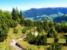 Der Jochkreuztrail gehört zu den Touren, die gleichermaßen fordern wie belohnen. Bereits der Einstieg sorgt für ein Highlight: Vom Kreuz aus geht es direkt in die Abfahrt hinein – ein S2-Trail, der technisch versierte Bikerinnen und Biker mit Spaßfaktor pur abholt. Über wurzelige Passagen und kleine Stufen schlängelt sich der Pfad hinunter bis zum Telfer Berg.