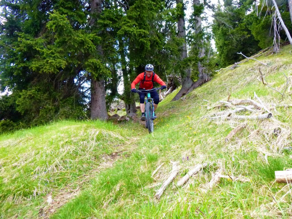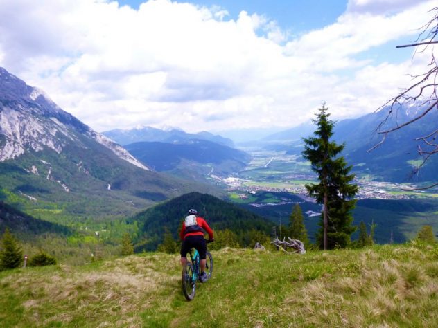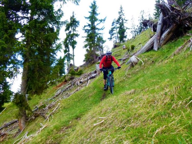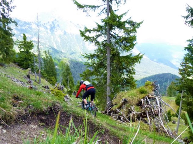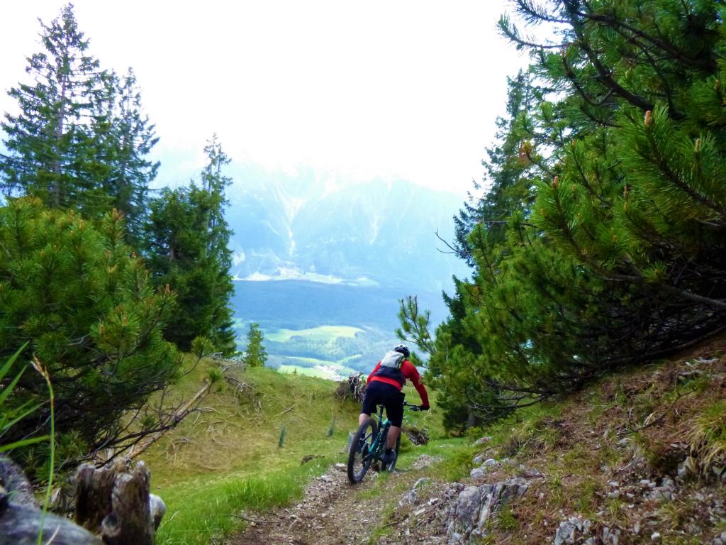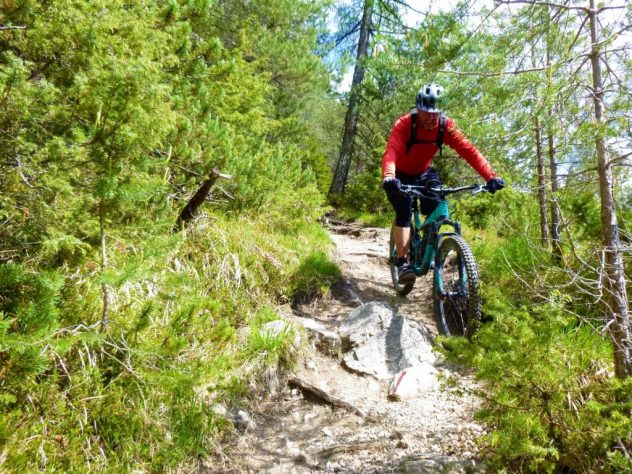 Der Trail von den Judenköpfen ist durchwegs mit einer oberen S3 zu bewerten. Ab der Schaferhütte wird’s dann leichter. Abwechselnd im Schwierigkeitsgrad S1 und S2 geht es extrem flowig über den Ochsenbründltrail hinunter nach Wildermieming.
