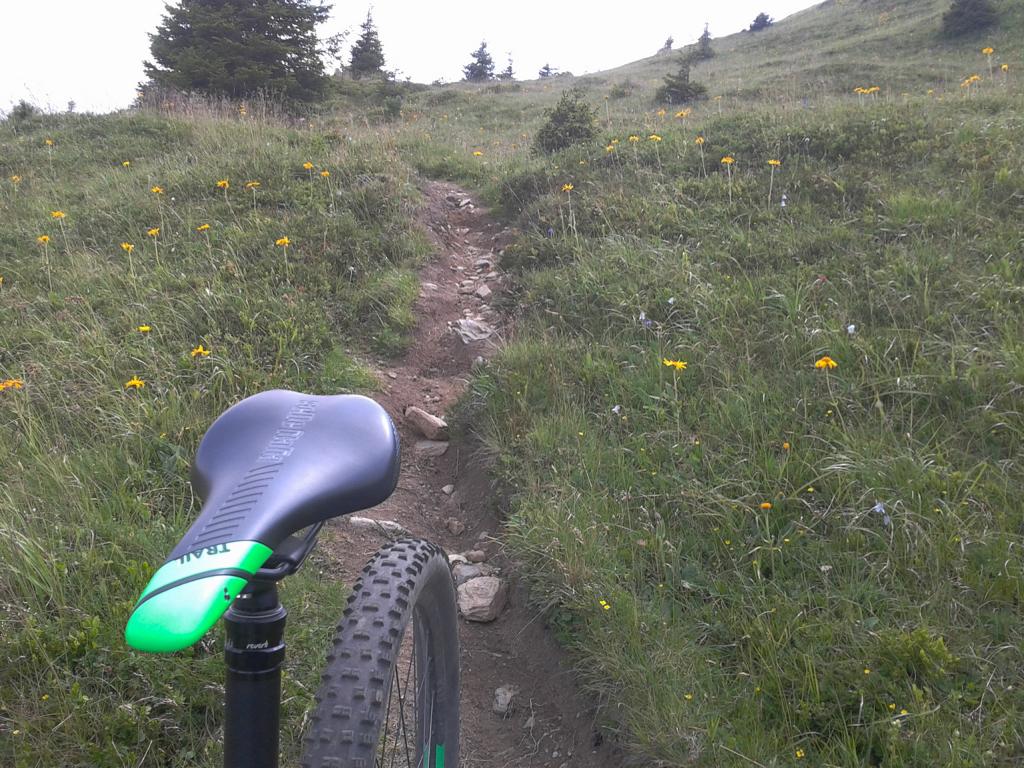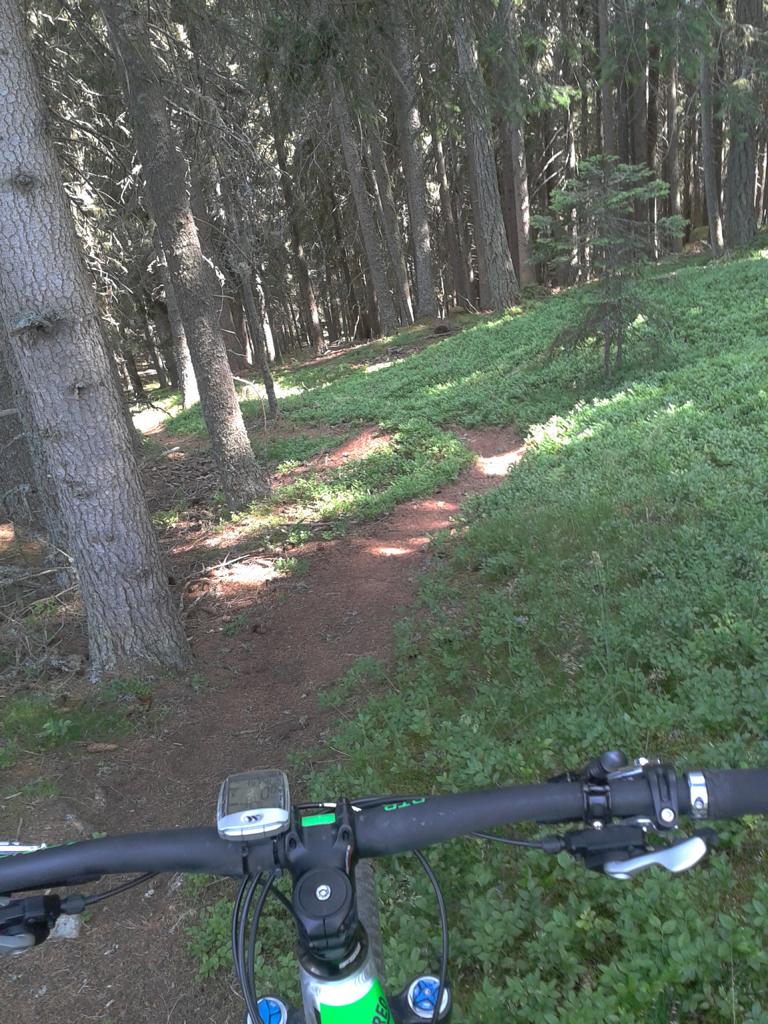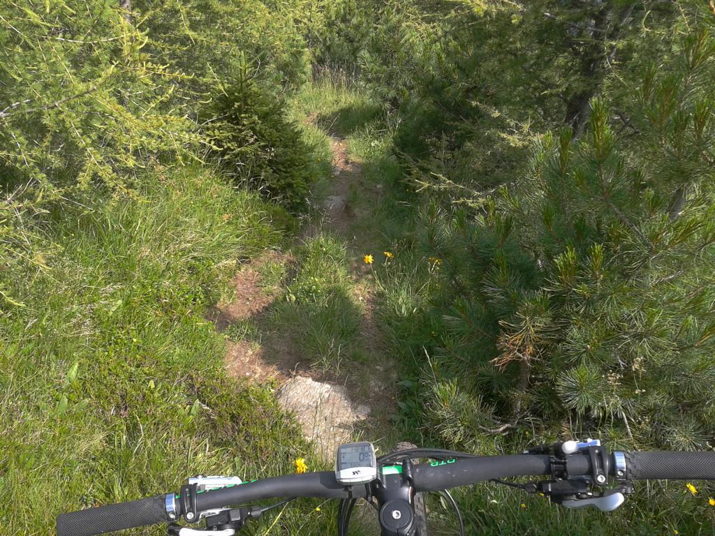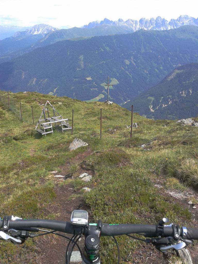 Von Oberperfuss hinunter Richtung Selraintal und bei der Abzweigung rechts die Asphaltstraße bergauf nach St. Quirin. Weiter die Forststraße hinauf bis zum Eisengatter wo der Weg wieder abwärts führt. Von dort das Bike ca. eine Stunde bis knapp unterhalb vom Kögele geschoben bzw. getragen. Der Schwierigkeitsgrad des Traumtrails mit Flow-Charakter liegt großteils bei S2/S1 im oberen Teil und weiter hinunter nach St. Quirin durch den Wald überwiegend S1 mit S2 Stellen wobei ich einen Sturz hinlegte, ist aber nicht viel passiert. Von St. Quirin über den Besinnungsweg zurück nach Oberperfuss.
