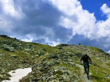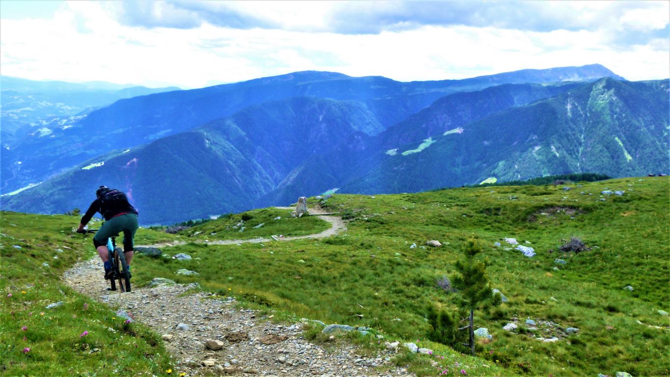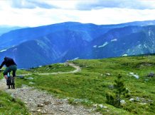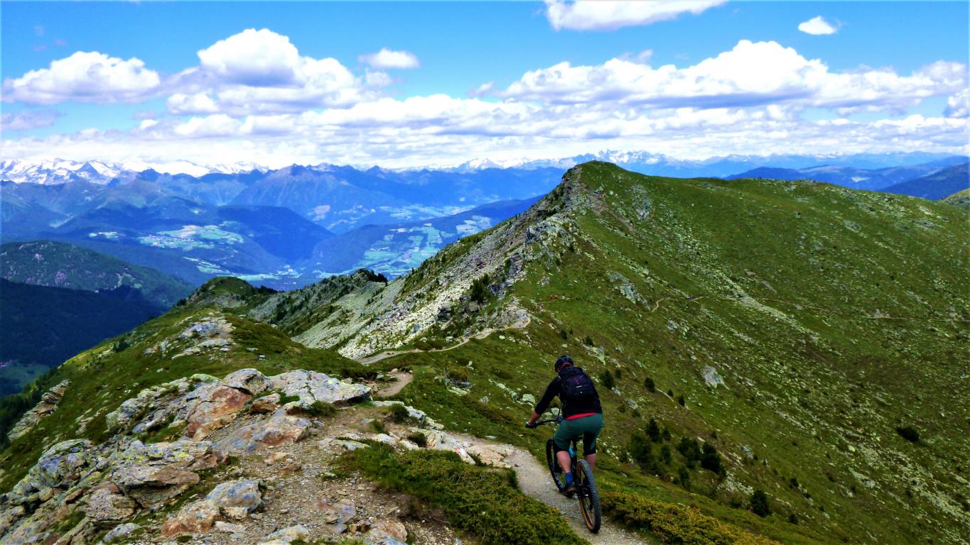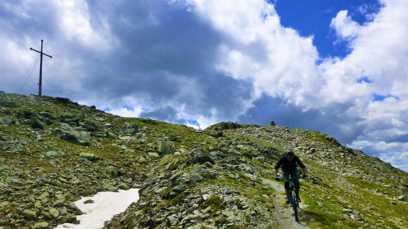 Vom Gipfel führt der 7-Trail durchgehend auf grobsteinigen und verblocktem Untergrund abwechselnd im Schwierigkeitsgrad S2 bis S3/G2 mit ein paar S4 Stellen zur Radlseehütte hinunter. Auf dem 8-Trail weiter, zum größten Teil auf verblocktem Untergrund, im Schwierigkeitsgrad S2/G1 mit ein paar S3/G2 Stellen hinüber zum Munschegg. Von dort weiter, am schönen und leichten 10-Trail, zum Garner Wetterkreuz hinunter. Der Schwierigkeitsgrad des Trails liegt bei S1/G1 mit ein paar S2/G1 Stellen.