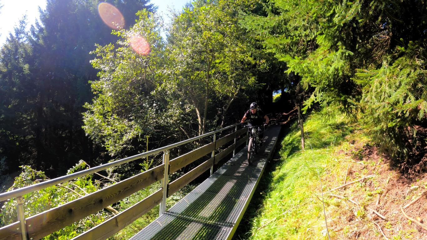 Vom Kreuz führt der Trail im Schwierigkeitsgrad S1 bis zur Achenthalalm. Am Boarstadl weiter führt der Trail mit der Schwierigkeit S1 bis S2 bis nach Oberau. Von der Oberau bei der «Schöne Aussicht» liegt der Trail mit ein paar Spitzkehren im Schwierigkeitsgrad S2.