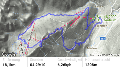 Der Trail führt vom Gipfel großteils im Schwierigkeitsgrad S2/G1 mit mehreren Stellen S3/G2 durchgehend auf festem Untergrund hinunter zur Galtalm. Von dort weiter über wurzeligen Waldboden abwechselnd im Schwierigkeitsgrad S2/S0 über Vergör zum Gröbenhof.