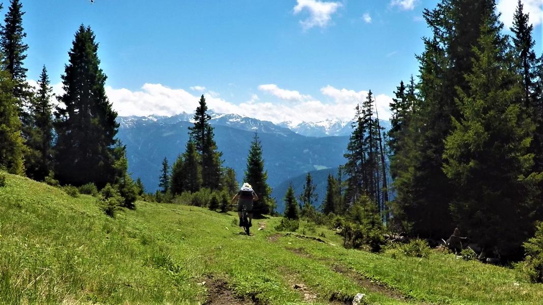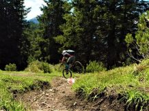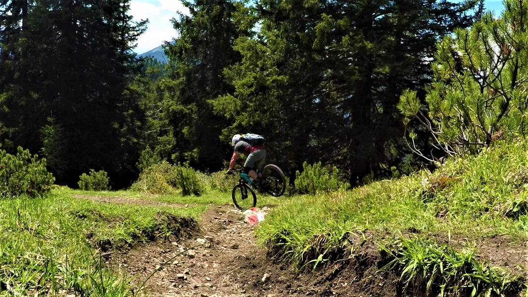 Der 22er-Trail führt über die Aussichtsplattform abwechselnd auf wurzeligen Waldboden und losem schottrigen Untergrund abwechselnd im Schwierigkeitsgrad S1/S2 übers Lehnberghaus zum Arzkasten.