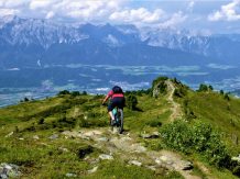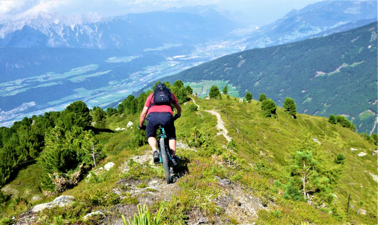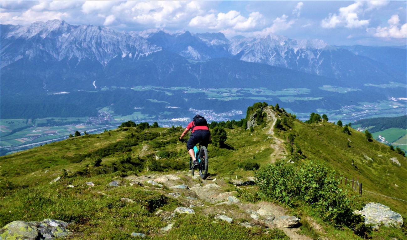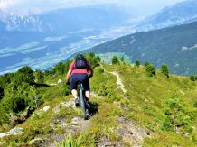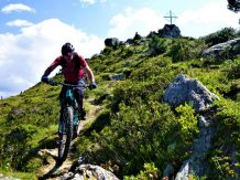 Abfahrt direkt vom Gipfelkreuz über den Glotzer zum größten Teil auf verfestigten Untergrund im Schwierigkeitsgrad S2/G1 mit ein paar S3/G2 Stellen hinunter zur Largozalm. Von dort weiter über den flowigen S2 Trail auf festem Untergrund mit einigen S3 Spitzkehren, kleineren Wurzel- und Felsstufen hinunter zur Krepperhütte.