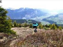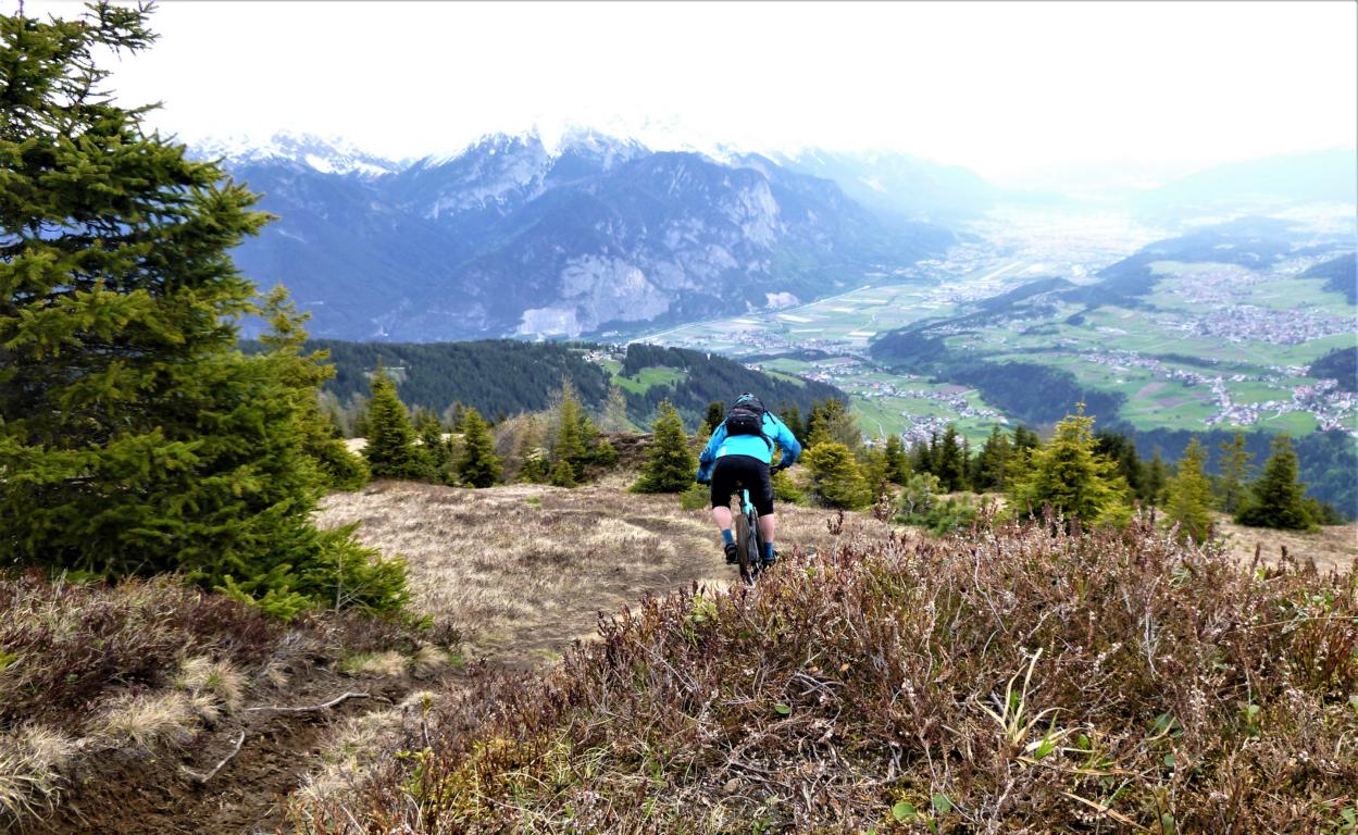 Vom Tiefental bei Oberperfuss auf der Fortstraße über Passwies nach Meils und von dort aufs Wetterkreuz. Die letzten 300 Hm müssen getragen werden. Der Schwierigkeitsgrad vom Kreuz hinunter bis zur Forststraße liegt bei S2/G1. Hinunter zum Tiefental durch den Wald überwiegt der Schwierigkeitsgrad bei S1 mit S2 Stellen.
