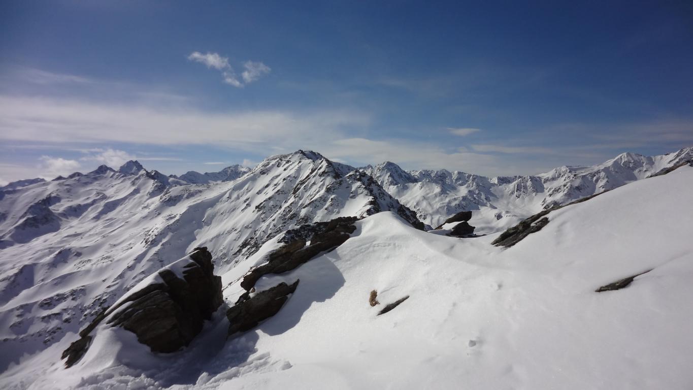 Abfahrtsvariante über die Mitterzaigerböden bei nicht immer tragendem Harschdeckel mit etwas Pulverauflage.