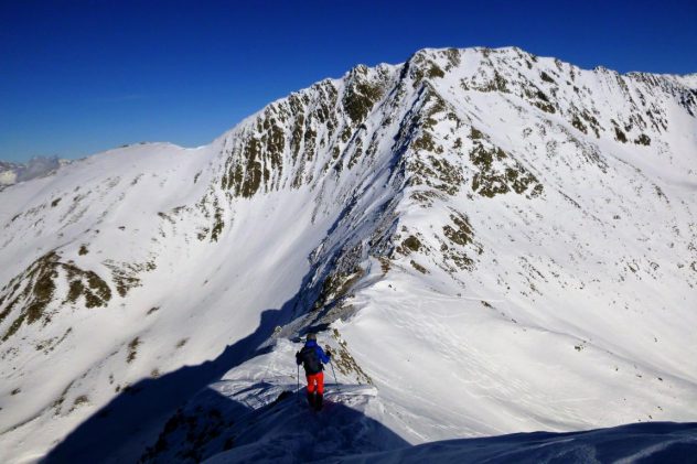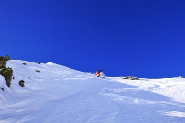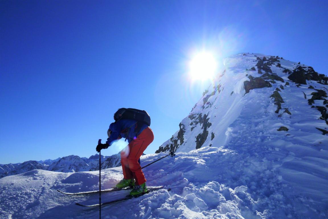 Die Abfahrtsvariante über die Mitterzaigerböden bei brauchbarem Pulver. Am Hang zum Klammbach lag guter Pulver und die Unterlage passte. Vom Bach den gut fahrbaren Forstweg ohne Steinkontakt bis zur Lawinengalerie.