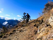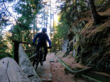 Von Grein führt ein wunderbarer Walweg fast eben südwärts, man erreicht schliessliche wieder ein Strässchen, und diesem steigt man erneut hoch. Bei einer Rechtsserpentine auf 1660 Meter fährt man auf einem Trail gerade aus, passiert eine Waldlichtung und erreicht schliesslich den kleinen Ort Ober Tels. Nun geht es in die Schotterabfahrt nach St. Peter, wo der Singletrail-Spass beginnt. Ein Pfad führt durch das steile Gelände hinab in Richtung Eyrs.