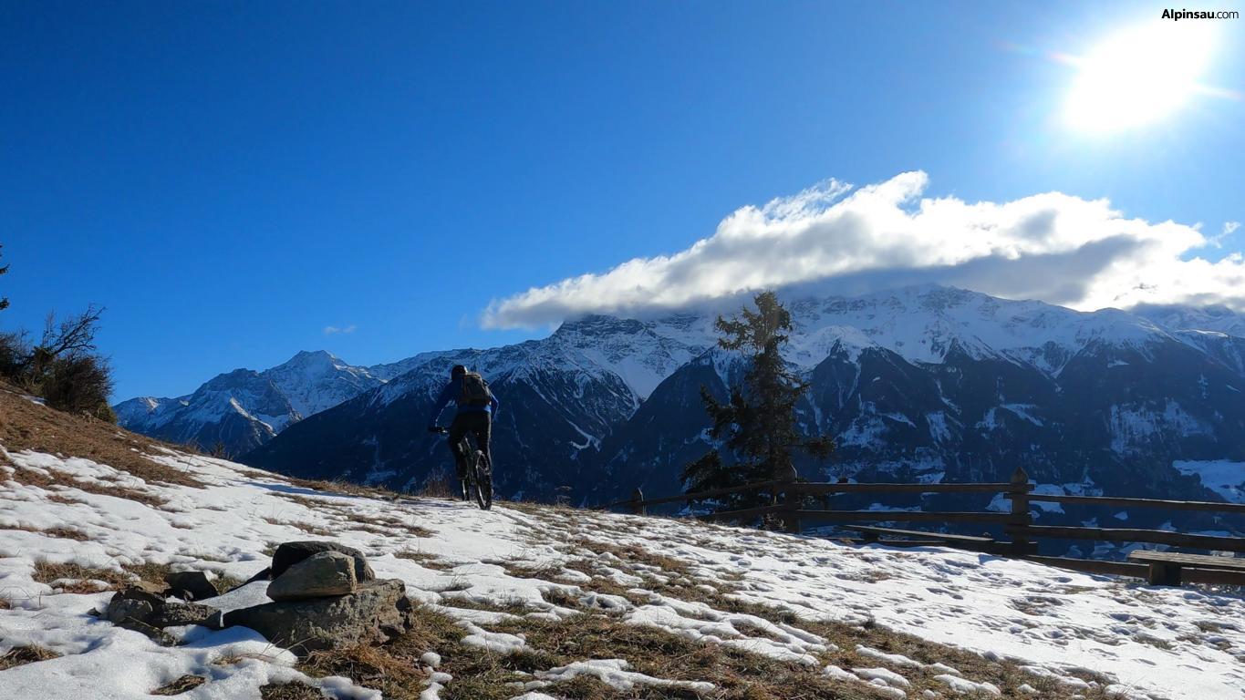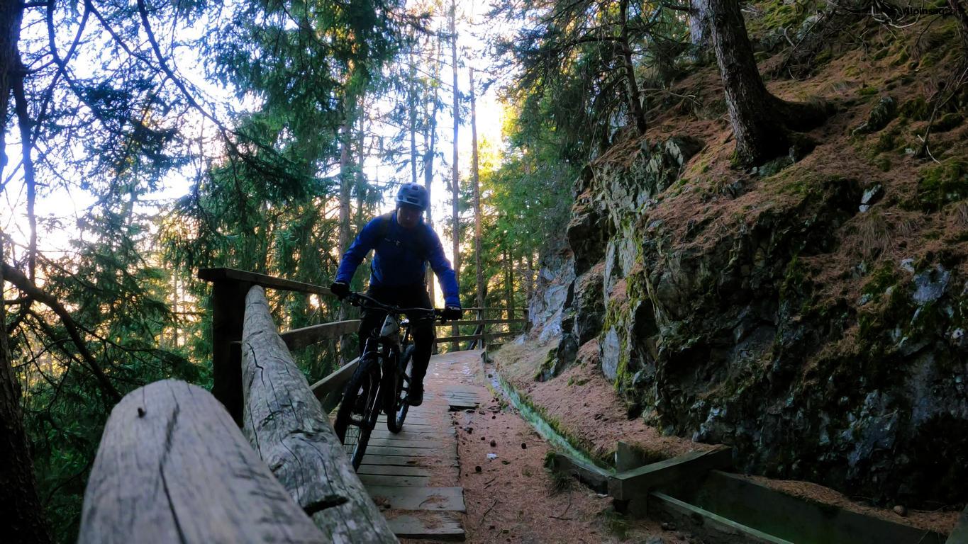 Von Grein führt ein wunderbarer Walweg fast eben südwärts, man erreicht schliessliche wieder ein Strässchen, und diesem steigt man erneut hoch. Bei einer Rechtsserpentine auf 1660 Meter fährt man auf einem Trail gerade aus, passiert eine Waldlichtung und erreicht schliesslich den kleinen Ort Ober Tels. Nun geht es in die Schotterabfahrt nach St. Peter, wo der Singletrail-Spass beginnt. Ein Pfad führt durch das steile Gelände hinab in Richtung Eyrs.