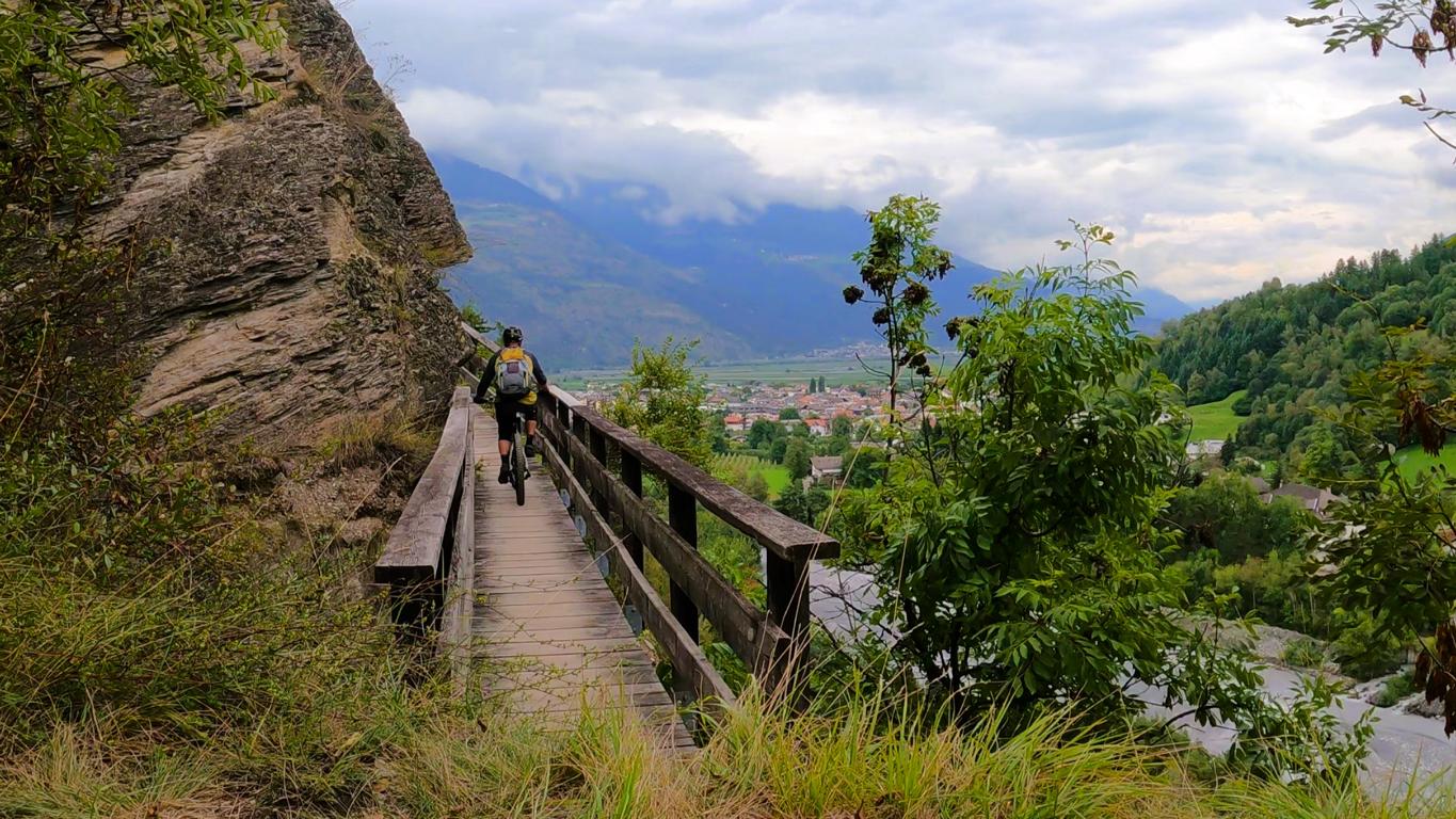 Von Stilfs wartet mit dem 34er Trail die wohl anspruchsvollste Passage der Runde. Extrem steile Treppenstufen, super enge Spitzkehren und teils ausgesetzte Stellen lassen den Schwierigkeitsgrad auf S4/S5 steigen. Hier ist absolute Konzentration Pflicht – und wer mag, darf an besonders heiklen Stellen auch mal schieben. Belohnt wird man mit einem eindrucksvollen Trail-Erlebnis voller Adrenalin.