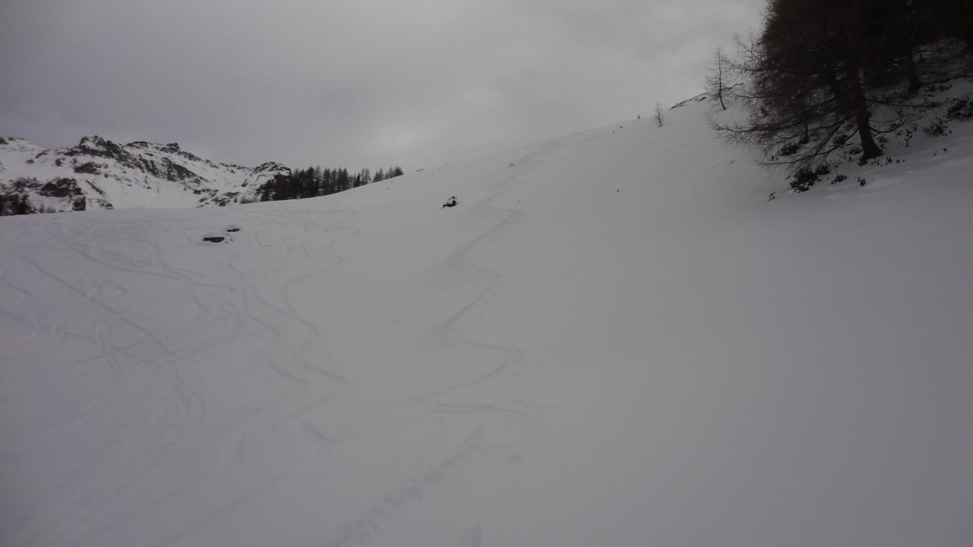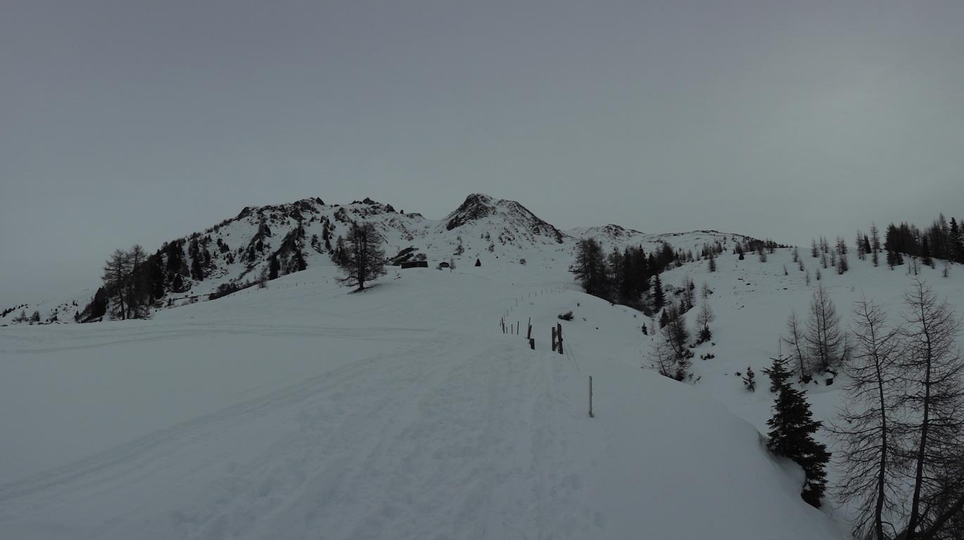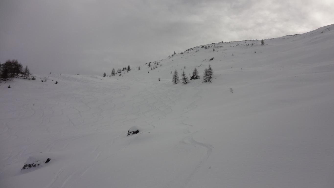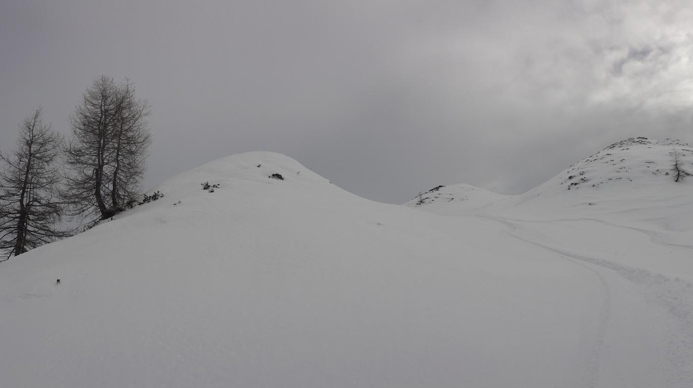 Aufstieg bis zur Naviserhütte über den Sommersteig, wenig Schnee. Von der Naviserhütte bis zum Weirichegg ausreichende Schneelage aber schon alles verspurt. Im oberen Teil über den Rücken zum Gipfel problemlos. Die Abfahrt über das Skigelände nach Norden zur Knappenkuchl ist bereits auch schon stark verspurt. Trotz der vielen Spuren ist immer noch Platz für die eigenen Schwünge in noch guten Pulverschnee. Weiter hinunter zur Klammalm und den Forstweg hinaus bis zur Peeralm folgend und dort links über die freien Hänge bis zum Klammbach hinab bis zum Parkplatz, problemlos, kein Bodenkontakt.