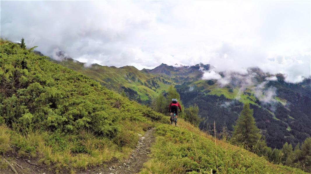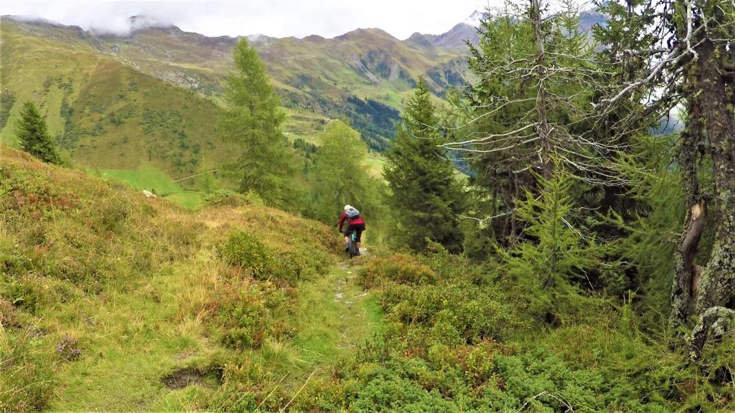 Auffahrt von Navis über die Grünhöfe zur Seapnalm und weiter zum Wetterkreuz. Abfahrt über den 22er Trail hinunter bis zur Forststraße die zur Peeralm führt. Kurz vor der Alm in den Trail rechts abbiegen bis hinunter zur Grüner Mühl und von dort zurück hinaus nach Navis.