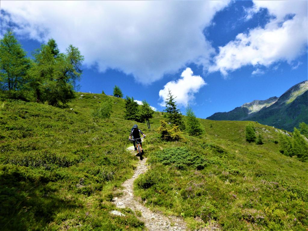 Auffahrt von Navis über die Grünhöfe zur Seapnalm und weiter zum Wetterkreuz. Abfahrt über den 22er Trail hinunter bis zur Forststraße die zur Peeralm führt. Kurz vor der Alm in den Trail rechts abbiegen bis hinunter zur Grüner Mühl und von dort zurück hinaus nach Navis.