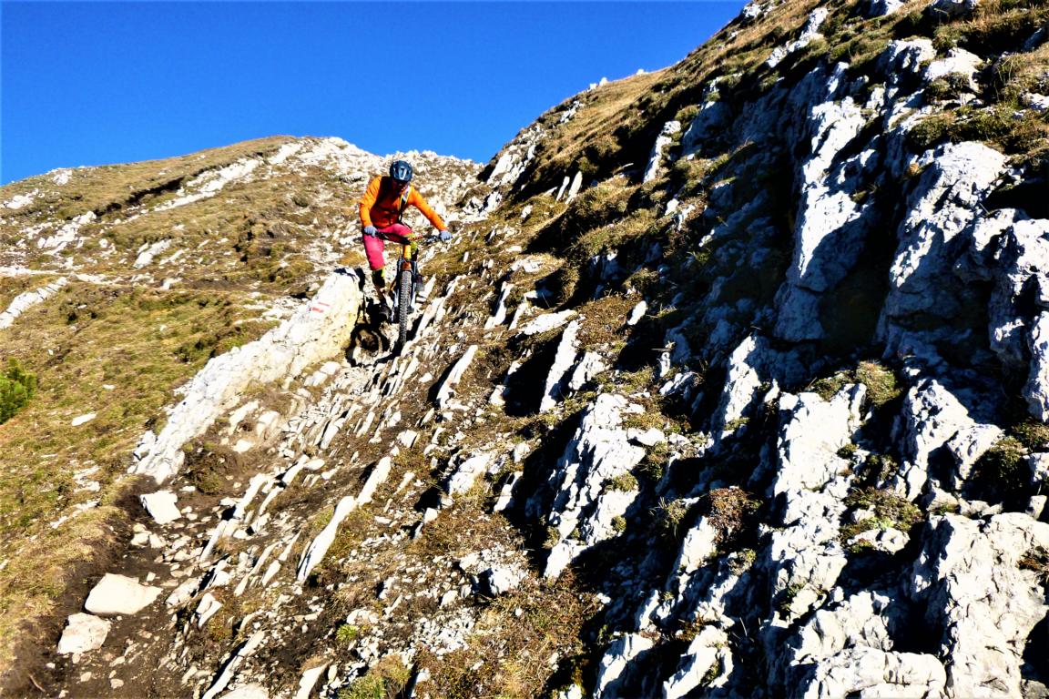 Der Trail von der Hütte führt zum größten Teil auf nicht verfestigten grobsteinigem Untergrund im Schwierigkeitsgrad S2/G2 mit mehreren S3/G2 Passagen hinunter zum Schartlehnerhaus. Von dort weiter führt der Trail durchgehend auf verfestigtem Waldboden mit mehreren Fels/Wurzelstufen und vielen Spitzkehren hinunter nach Reith. Der Schwierigkeitsgrad liegt Großteils bei S2 mit ein paar S3 Spitzkehren und einer S4/G3 Passage.