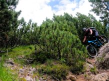 Direkt ab der Nördlingerhütte beginnt der Trail mit einem Paukenschlag: Grobsteiniger, felsiger Untergrund dominiert den Abstieg. Die Linienwahl ist oft fordernd, viele Passagen sind verblockt und verlangen sicheres Handling auf schwierigem Terrain. Der Schwierigkeitsgrad liegt über weite Strecken bei S3 – mit einigen besonders kniffligen Stellen, bei denen Technik, Mut und Konzentration gefragt sind.